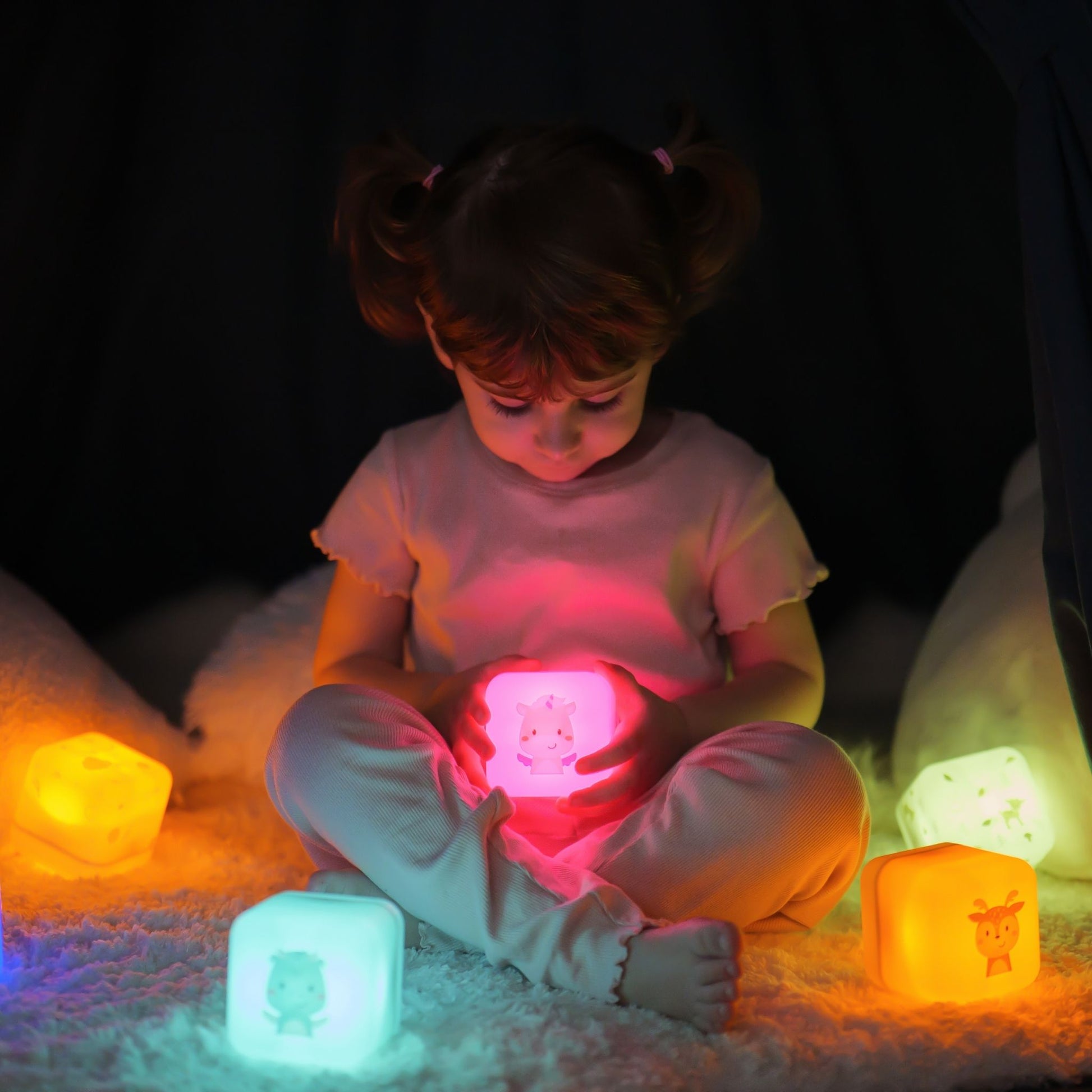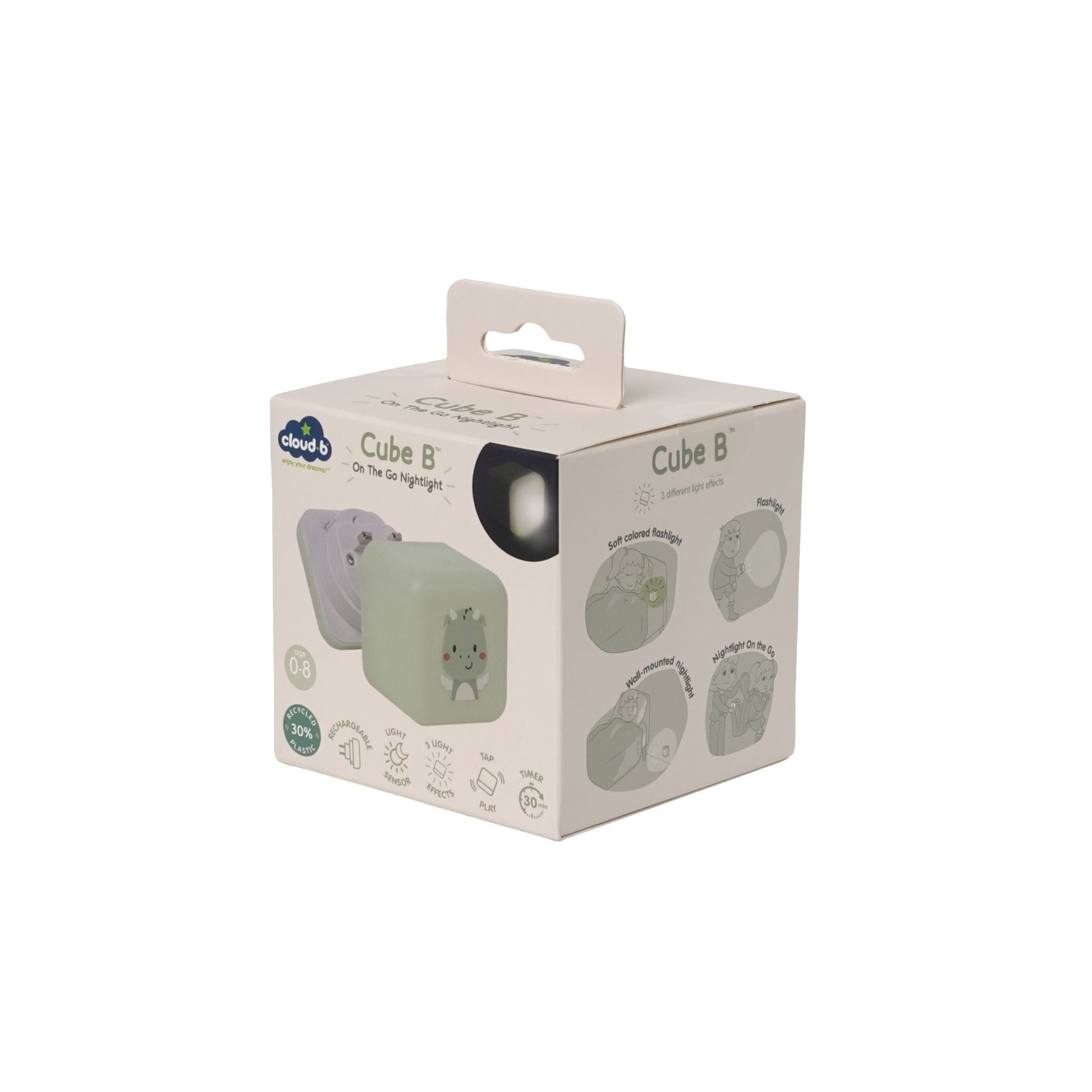 When the cube is reassembled, a tap on the intuitive sensor turns it into a focused light for books before bed. Another tap fills the whole cube with a cosy green hue, making it a portable and cosy companion for your little dreamer to keep closer at hand. Two levels of intensity are available to customise the light to your child's needs. After 30 minutes the light automatically powers down, inviting peaceful slumber without affecting sleep through the night.
