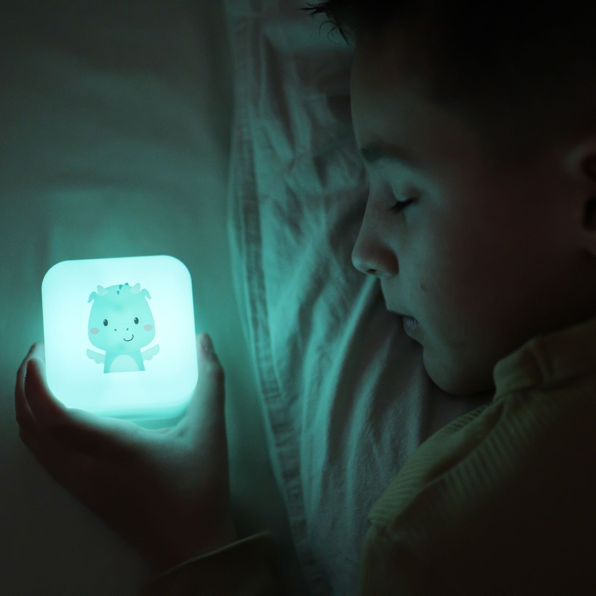 The versatile Cube B features an charming smiling dragon, offering three soothing light variations for different stages of the evening. The innovatively designed base can be removed and plugged into the wall, bathing part of the room in a soft white glow.