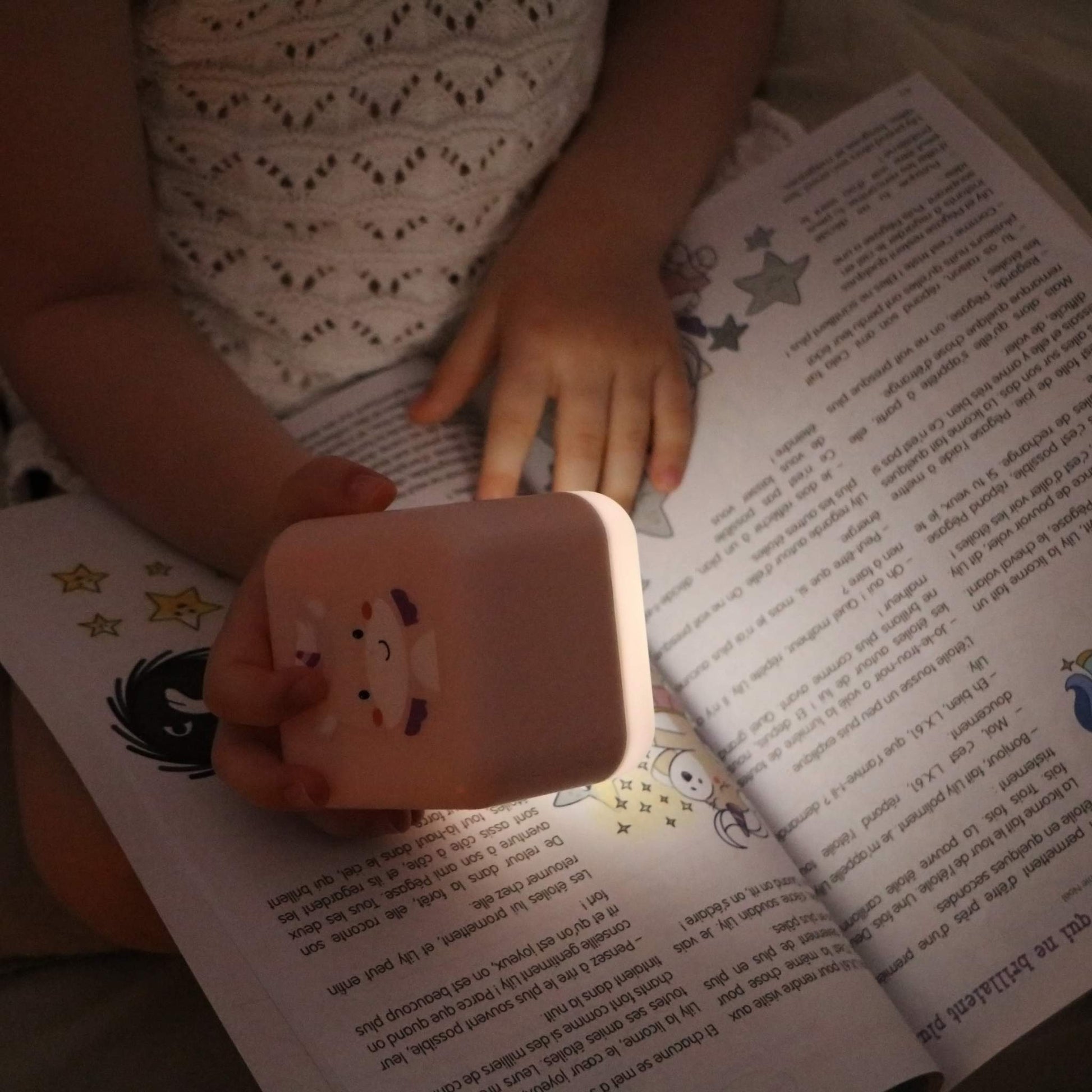 When the cube is reassembled, a tap on the intuitive sensor turns it into a focused light for books before bed. Another tap fills the whole cube with a warm pink hue, making it a portable and cosy companion for your little dreamer to keep closer at hand. Two levels of intensity are available to customise the light to your child's needs. After 30 minutes the light automatically powers down, inviting peaceful slumber without affecting sleep through the night.