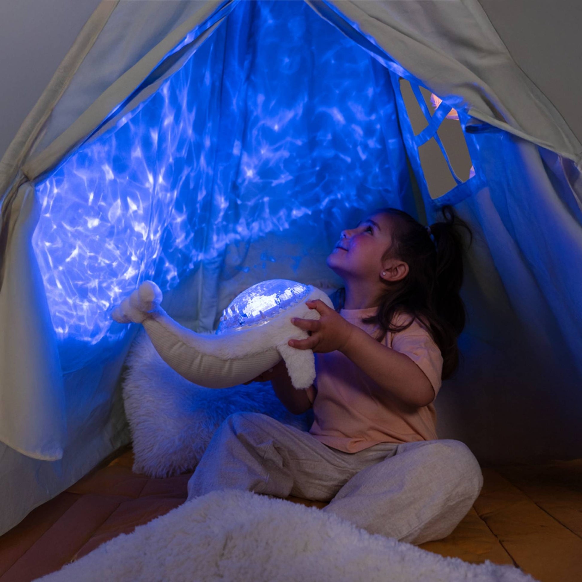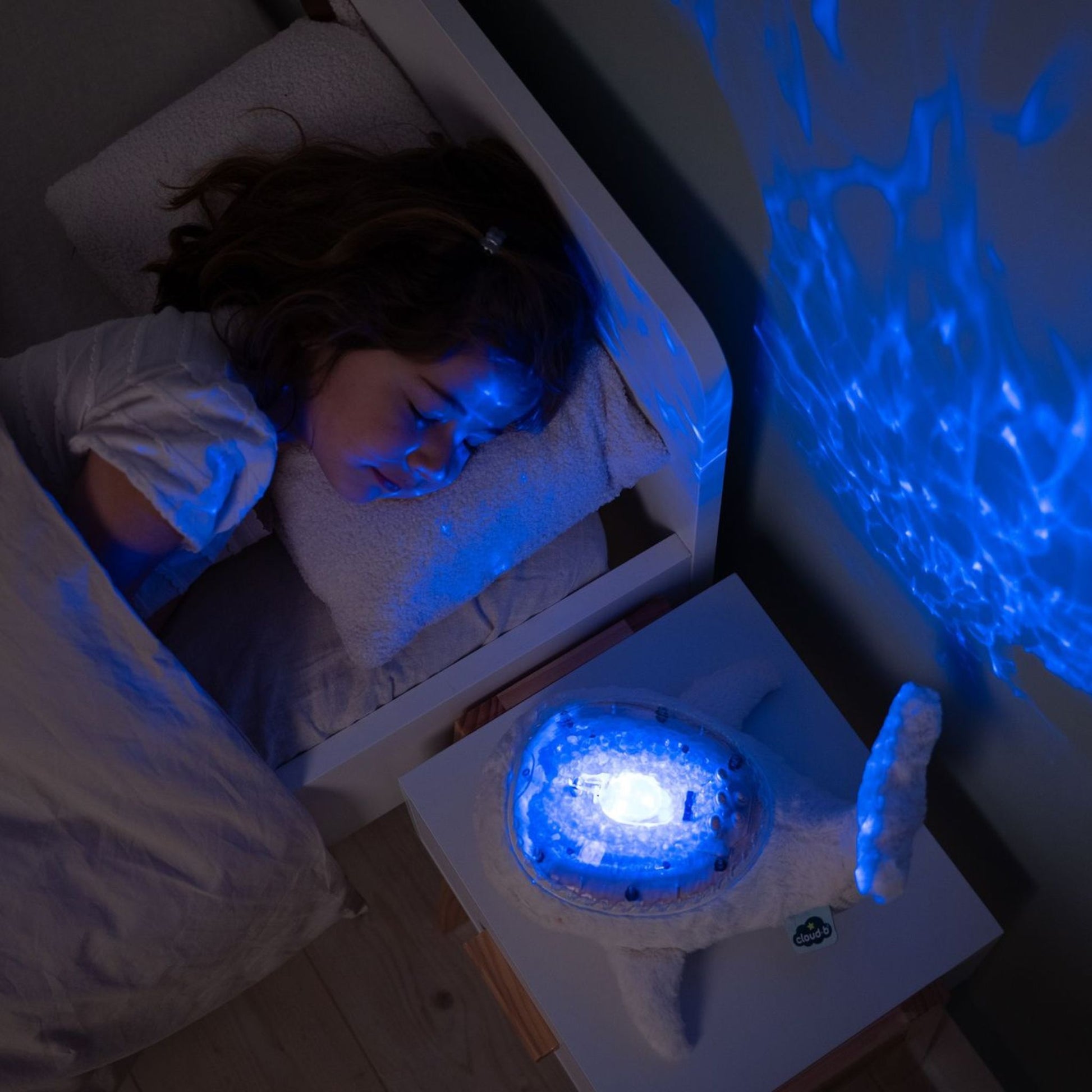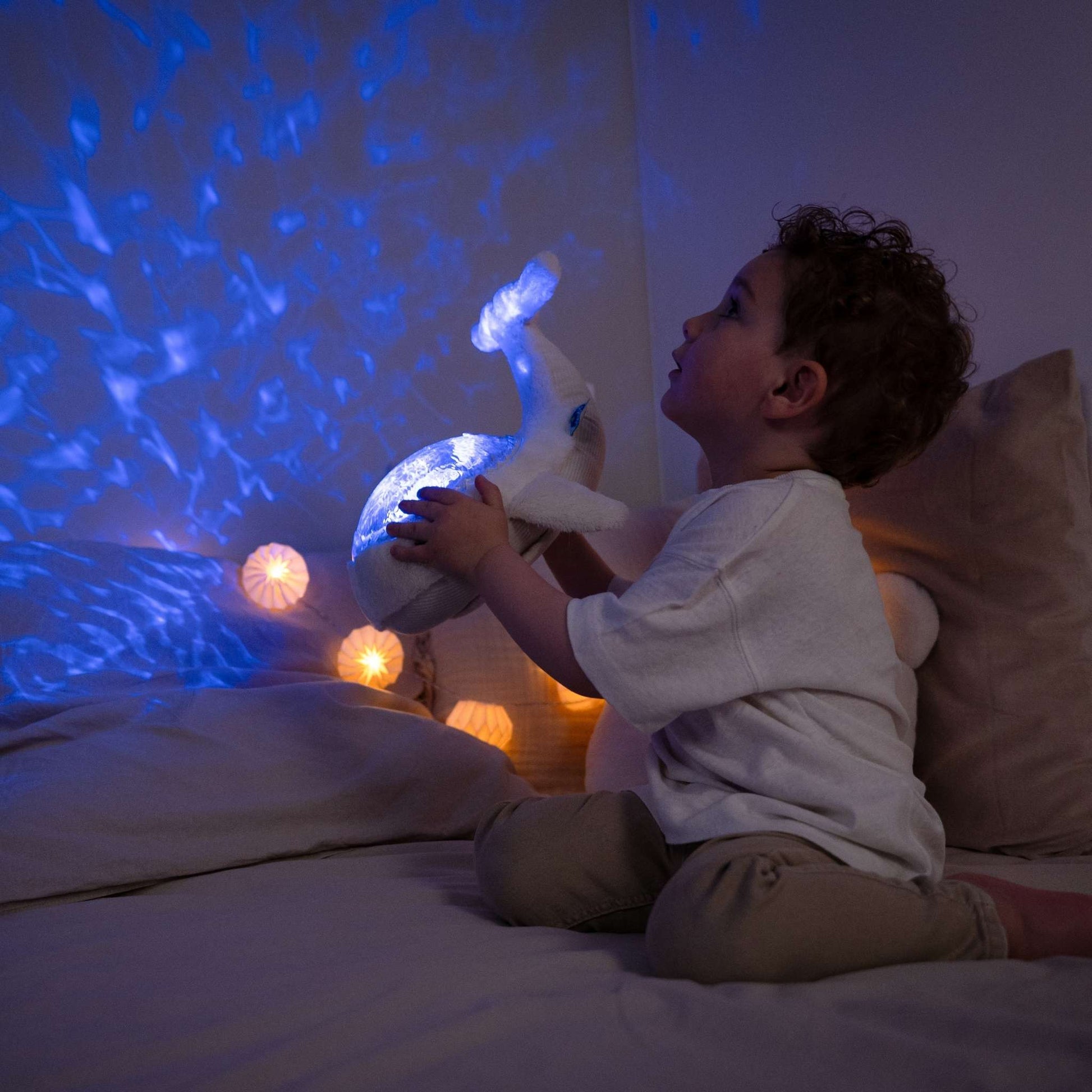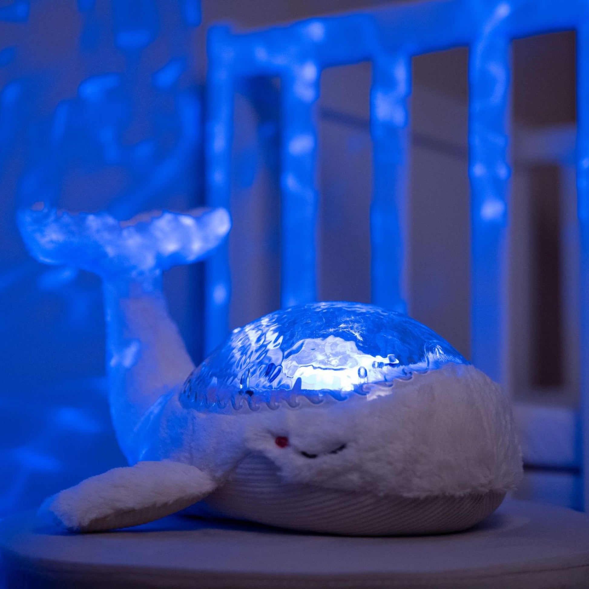 As blue waves lap gently on the walls, your child can choose from four soothing sounds - an underwater melody, tranquil melody, whale song or the sound of ocean waves. The brightness of the lights and volume level can both be adjusted to create perfect sleeping conditions. The light and sounds can also be used separately for an even gentler experience.