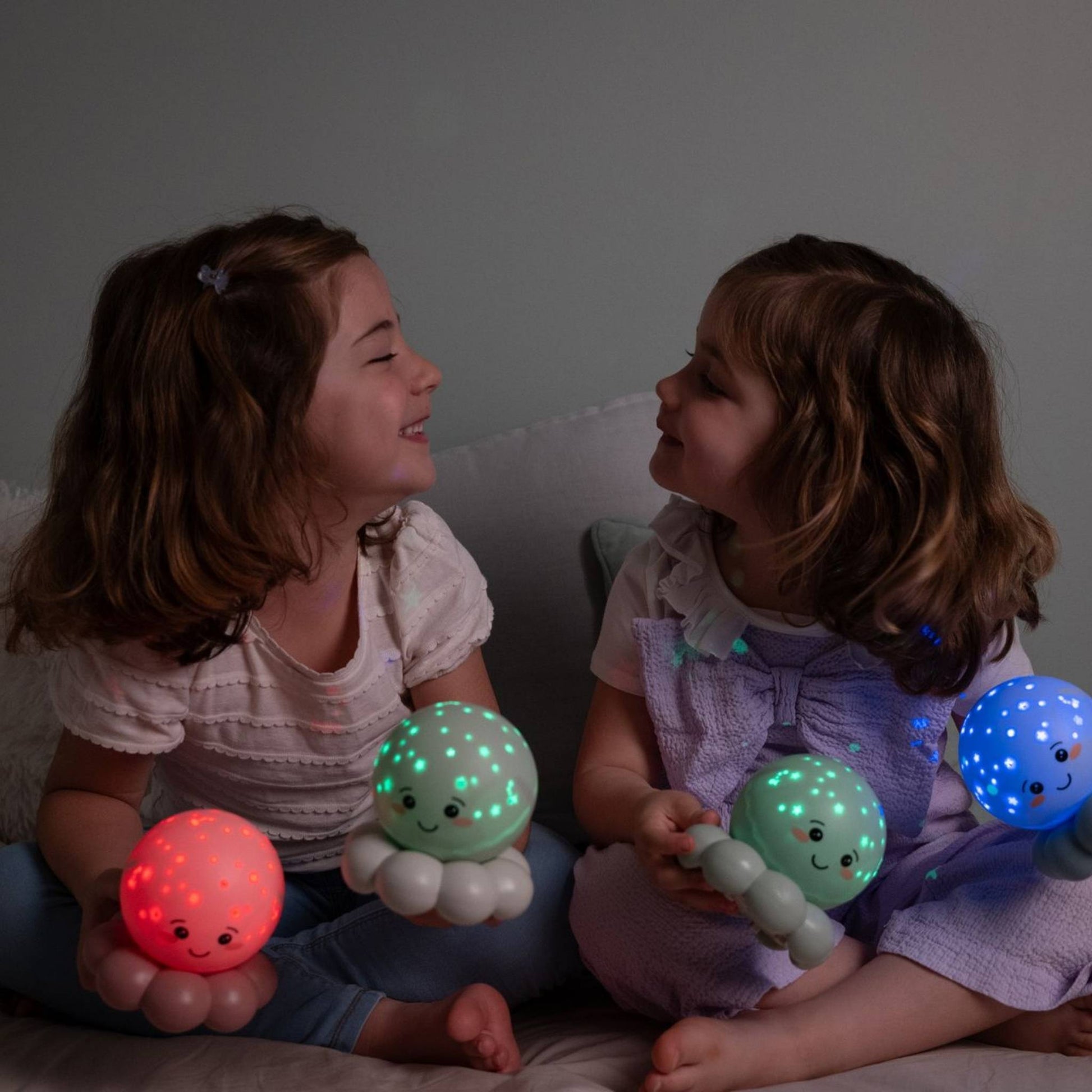 Cloud B's Twinkles To Go Octo in grey is ready to swim into your little one's life with a reassuring glow and a friendly smile. When turned on, the octopus sits neatly atop its tentacles, offering an array of lighting options.