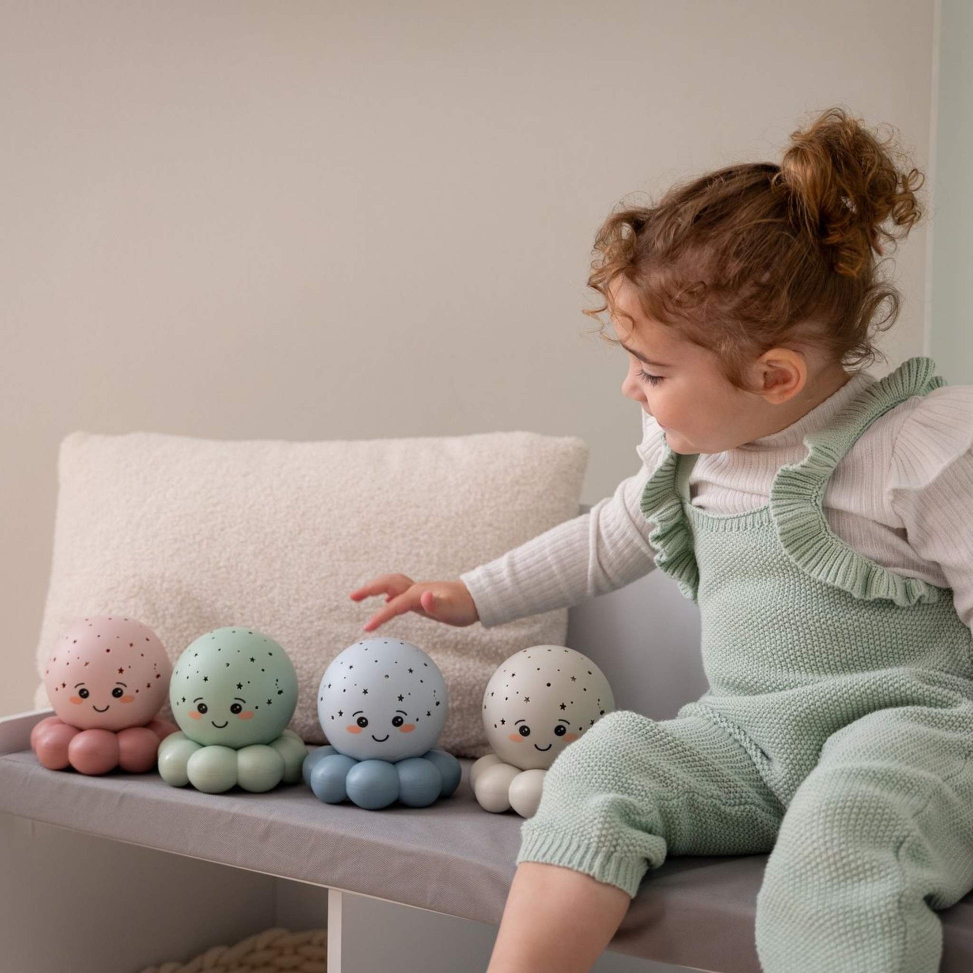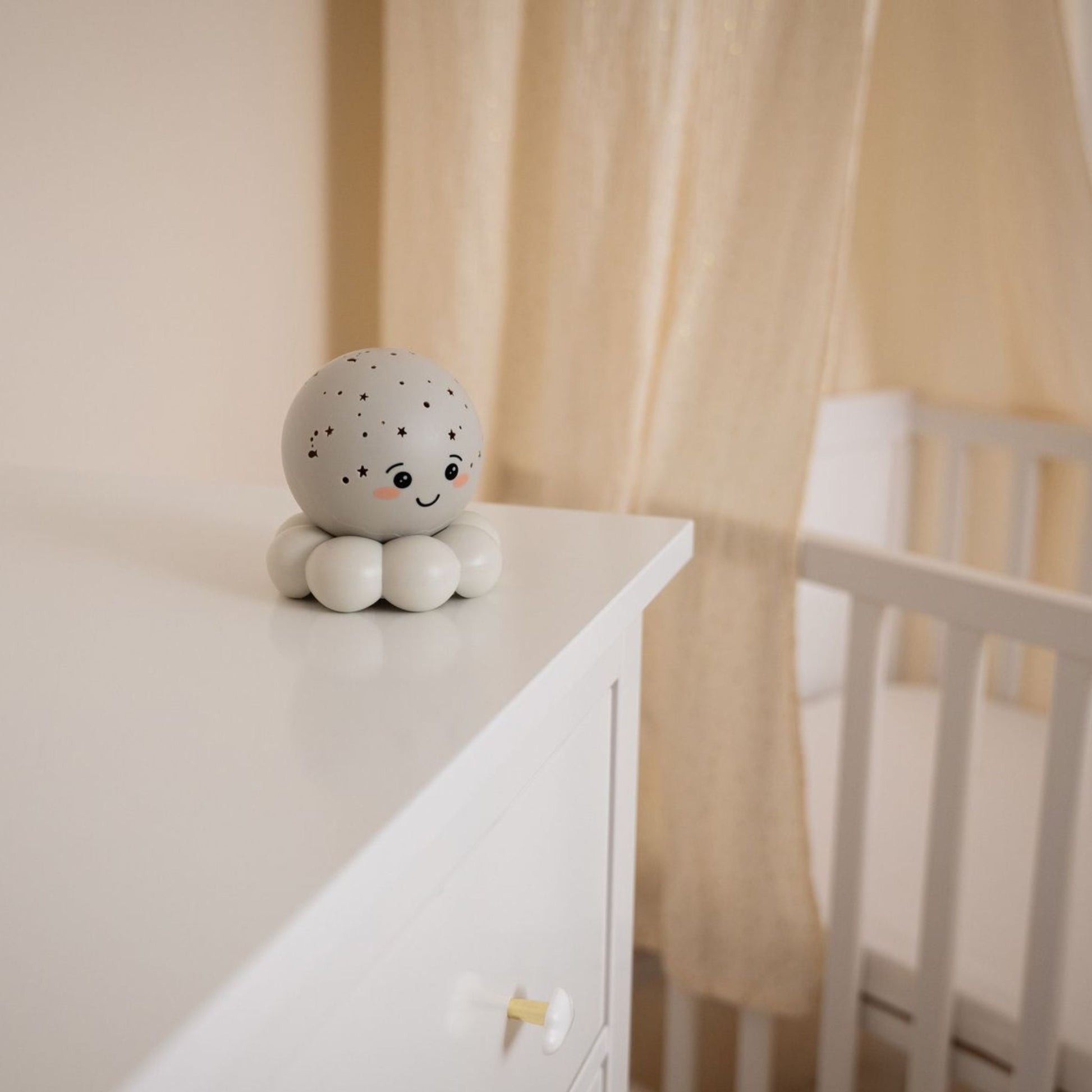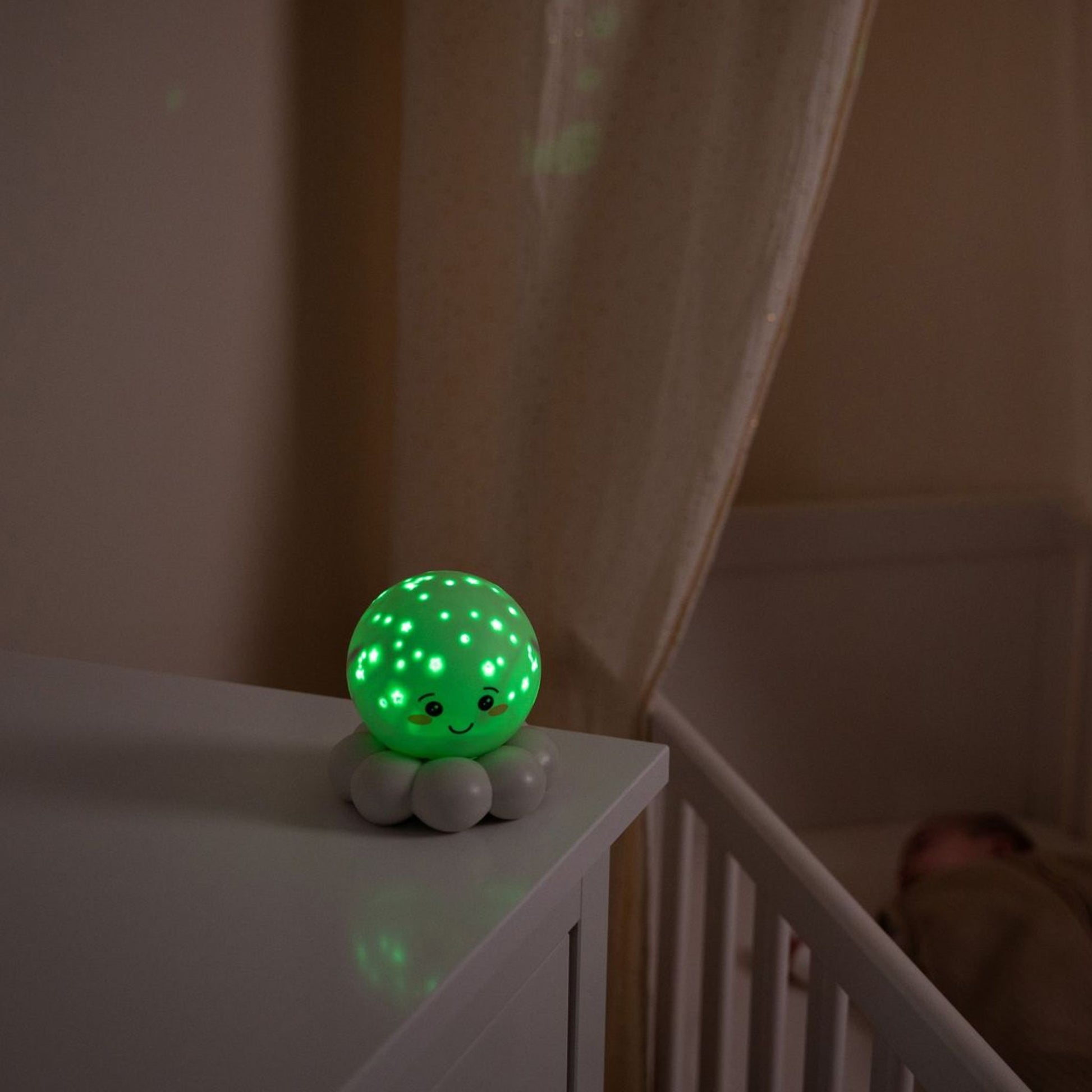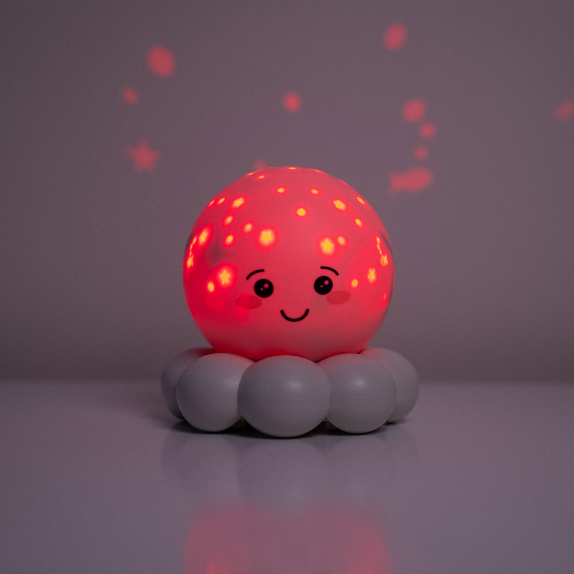 Your little one can pick their favourite projection colour - green, blue or red, or set the colours to gently loop. In each hue, stars, fish and bubbles will be projected outwards, adorning walls while creating a calming atmosphere. Octo sets the perfect tone for a peaceful rest. The control is simple for children to master, with a single button system. After 45 minutes of runtime, the light will turn itself off, providing the perfect window for drifting off to sleep.