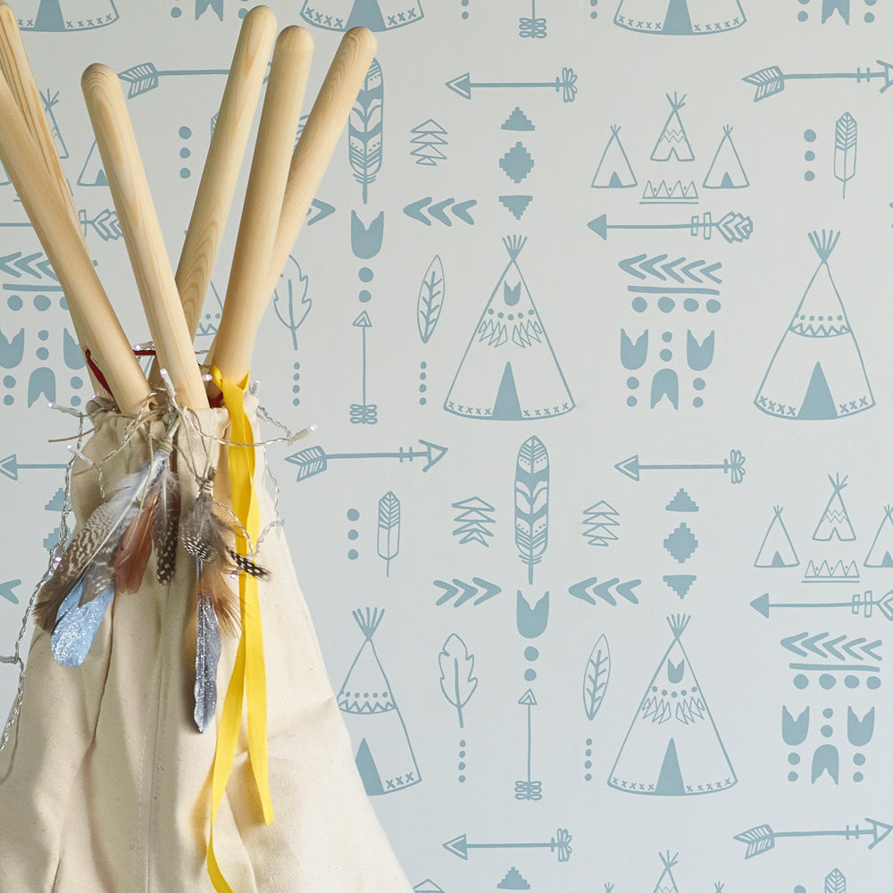Lay the foundations for future adventures with this Teepee inspired wallpaper from Hibou Design. Featuring an array of fun motifs and a simple colour palette, you'll create a space for your little one that is exciting without being overstimulating.