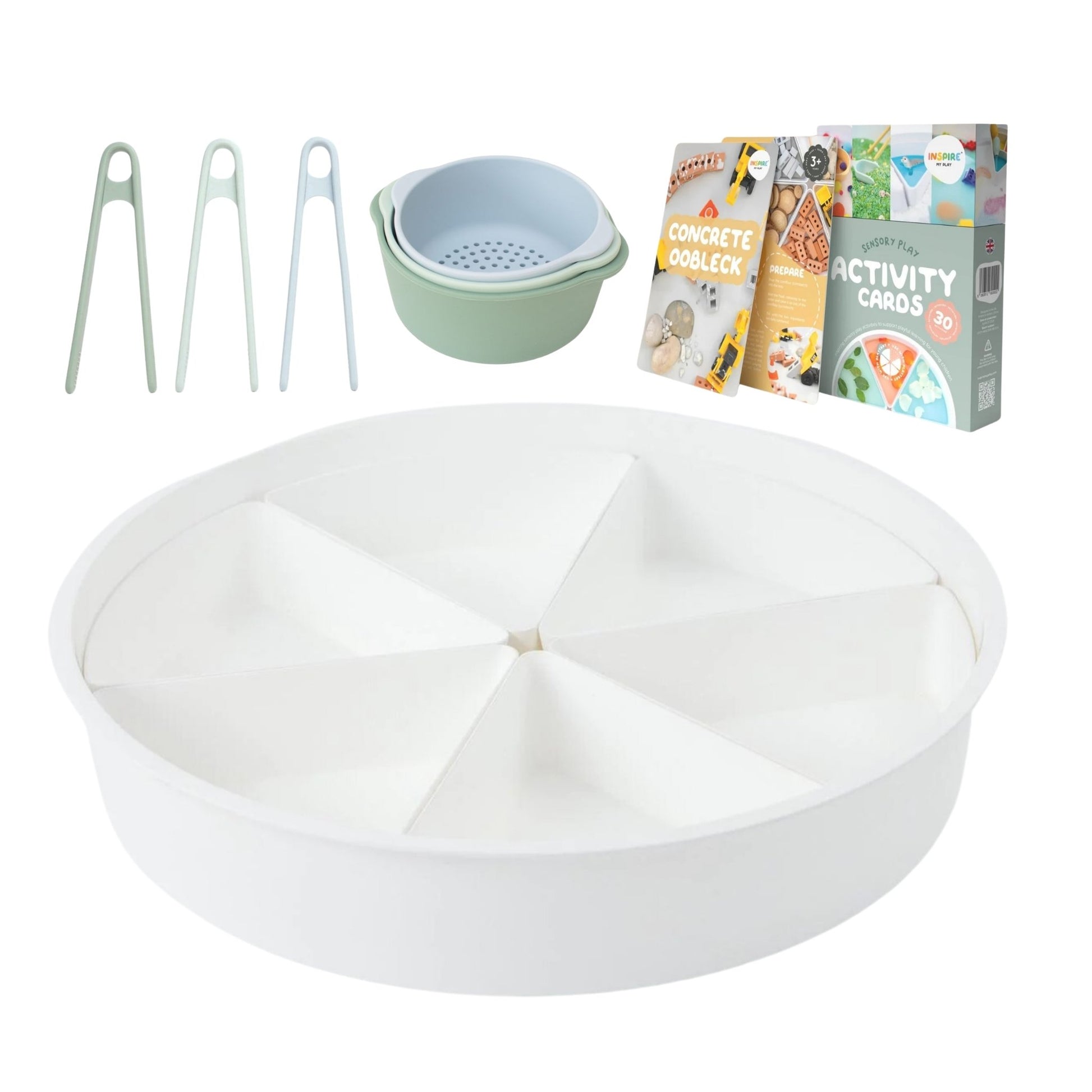 This Inspire My Play green bundle contains four essential items from the range to get you started with the world of sensory play. The sensory play cards are full of ideas, and the green nesting bowls and play tongs provide endless opportunities.