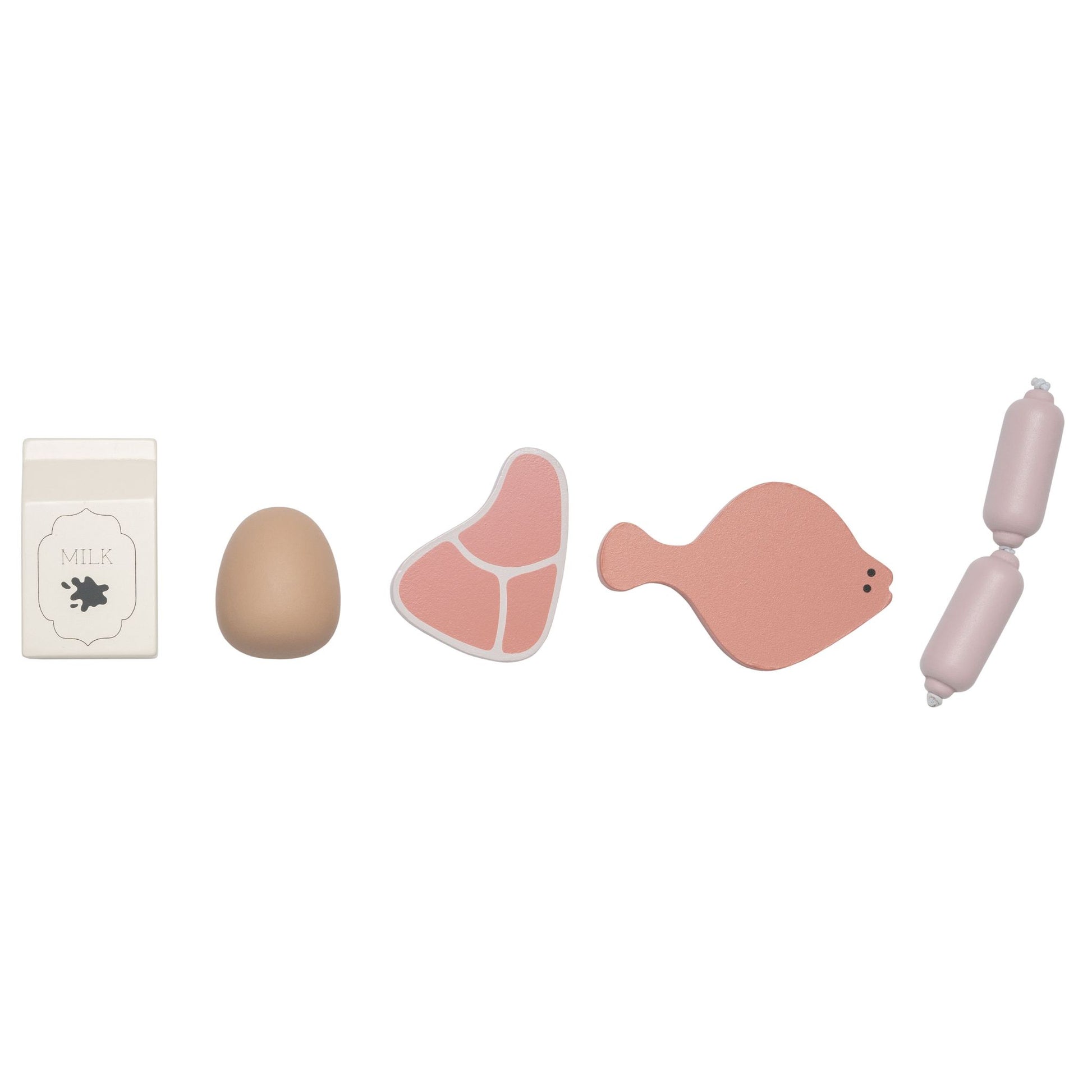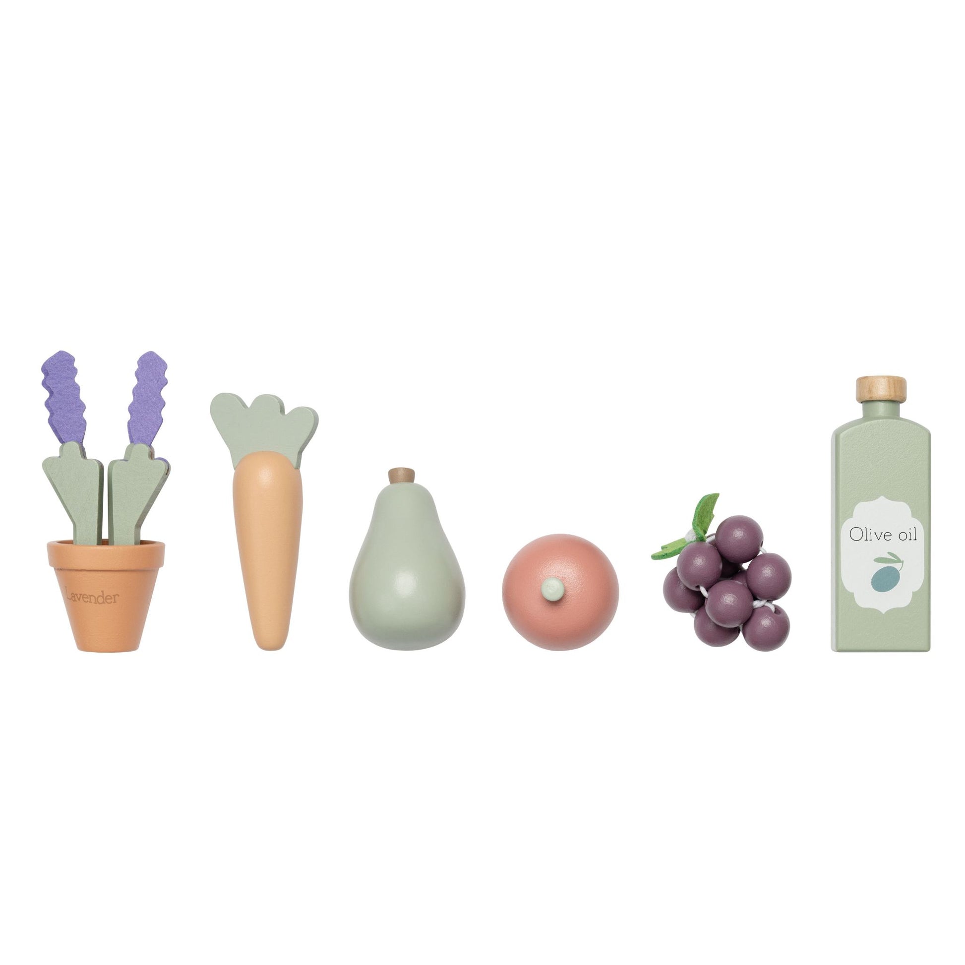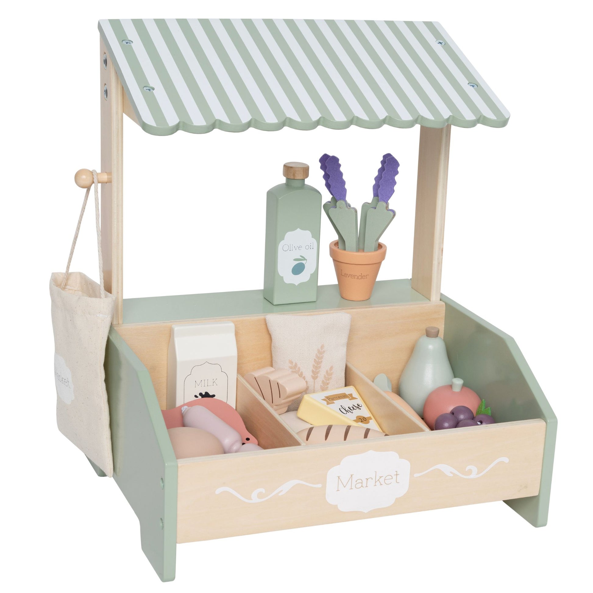 Crafted from a mixture of plywood, teawood and MDF, this set includes all the market essentials for your little one to set up shop. Featuring a mixture of vegetables, meats, cheeses, bread, flour, milk, olive oil and more, this set will keep your little one engrossed in imaginative play for hours on end.