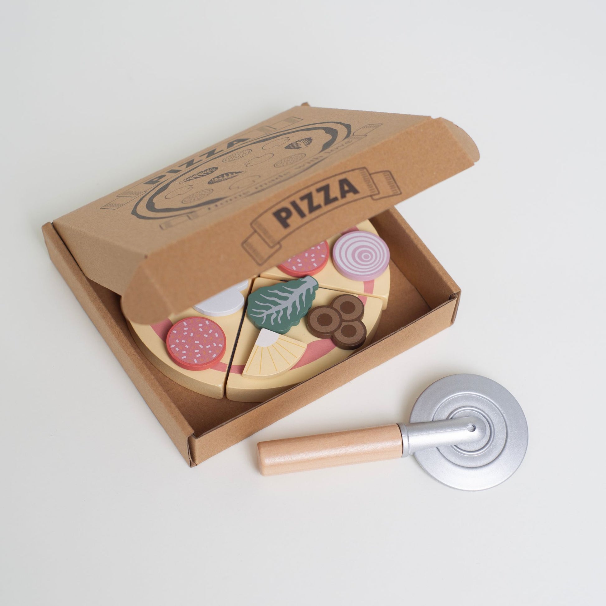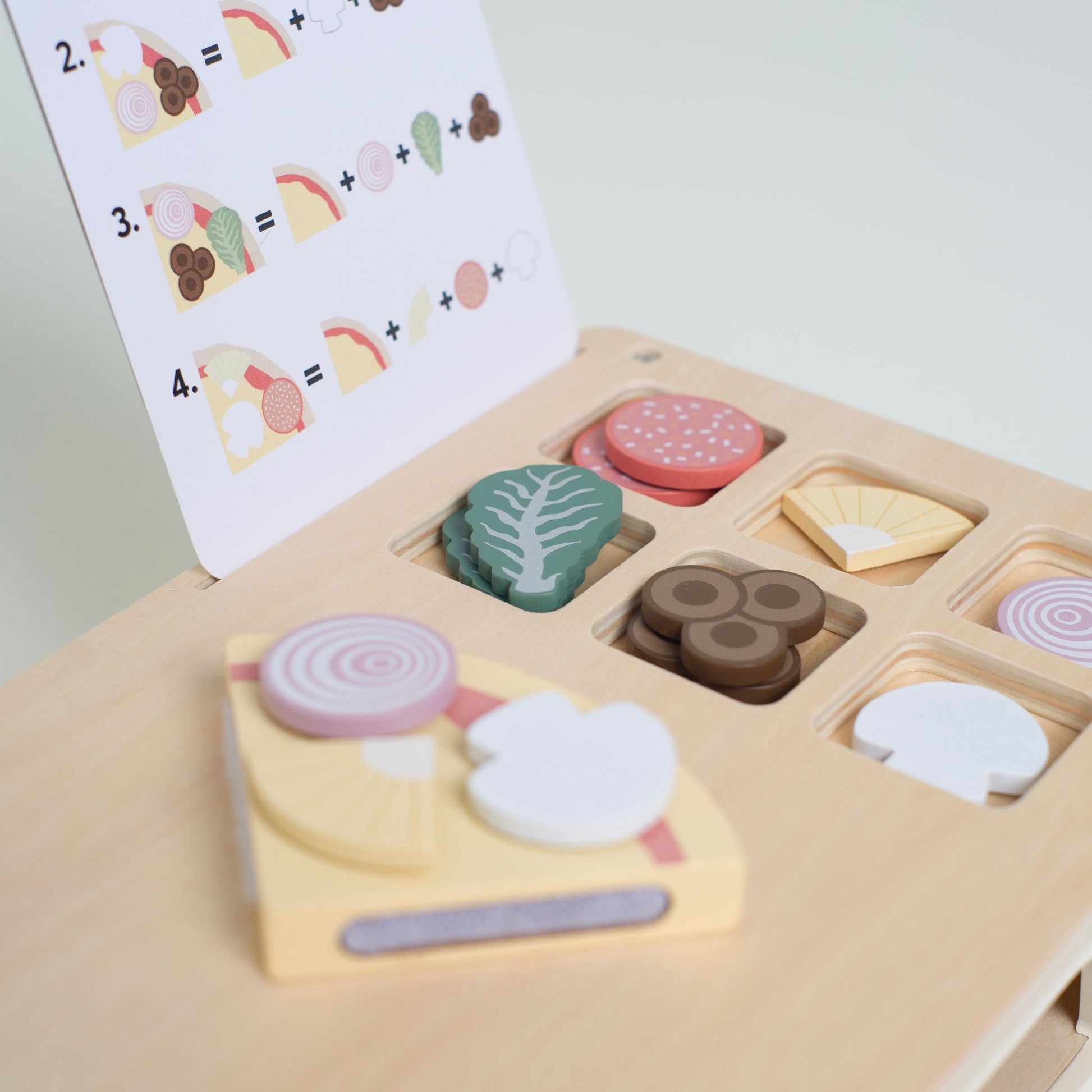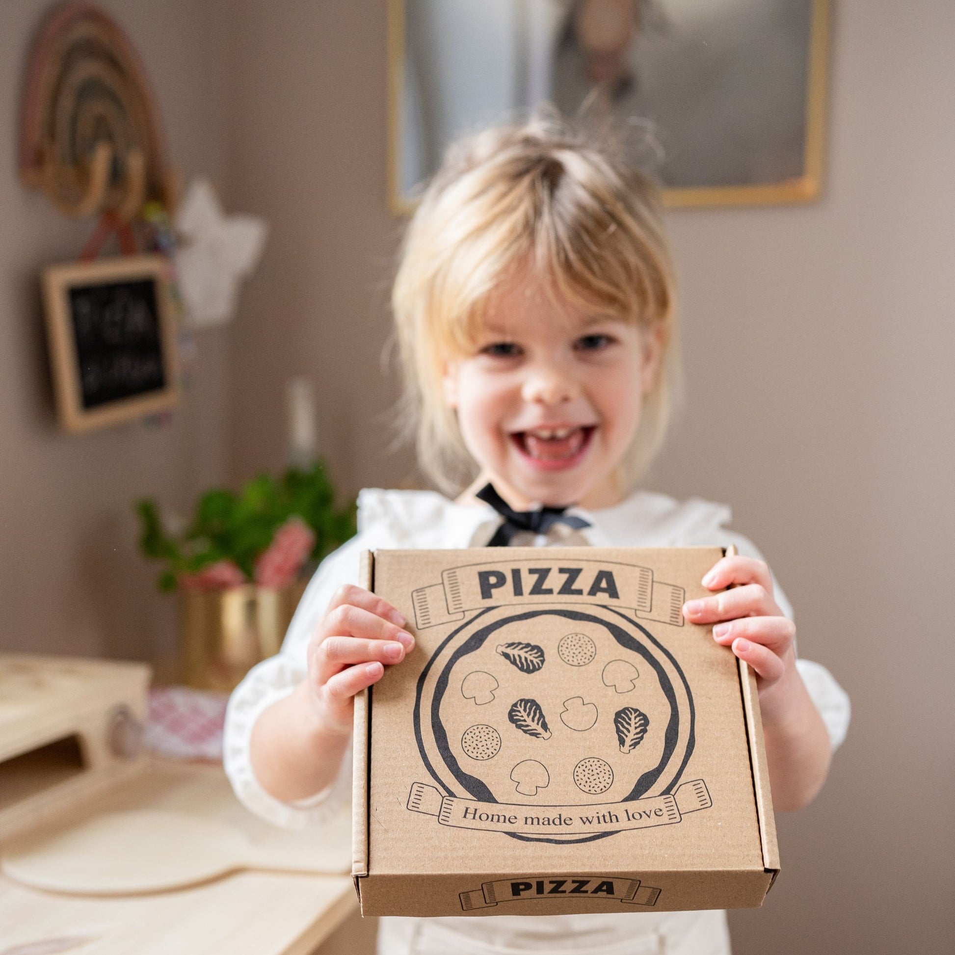 They will create endless variations of delicious pizzas layering toppings onto the pizza base and sliding it into the wooden oven to cook. The recipe card included provides a guide to get them going, and the pizza cutter will gently separate the velcro holding the slices together as they 'cut' the pizza. It even comes with a small pizza box just in case their customers prefer their pizza to take away.