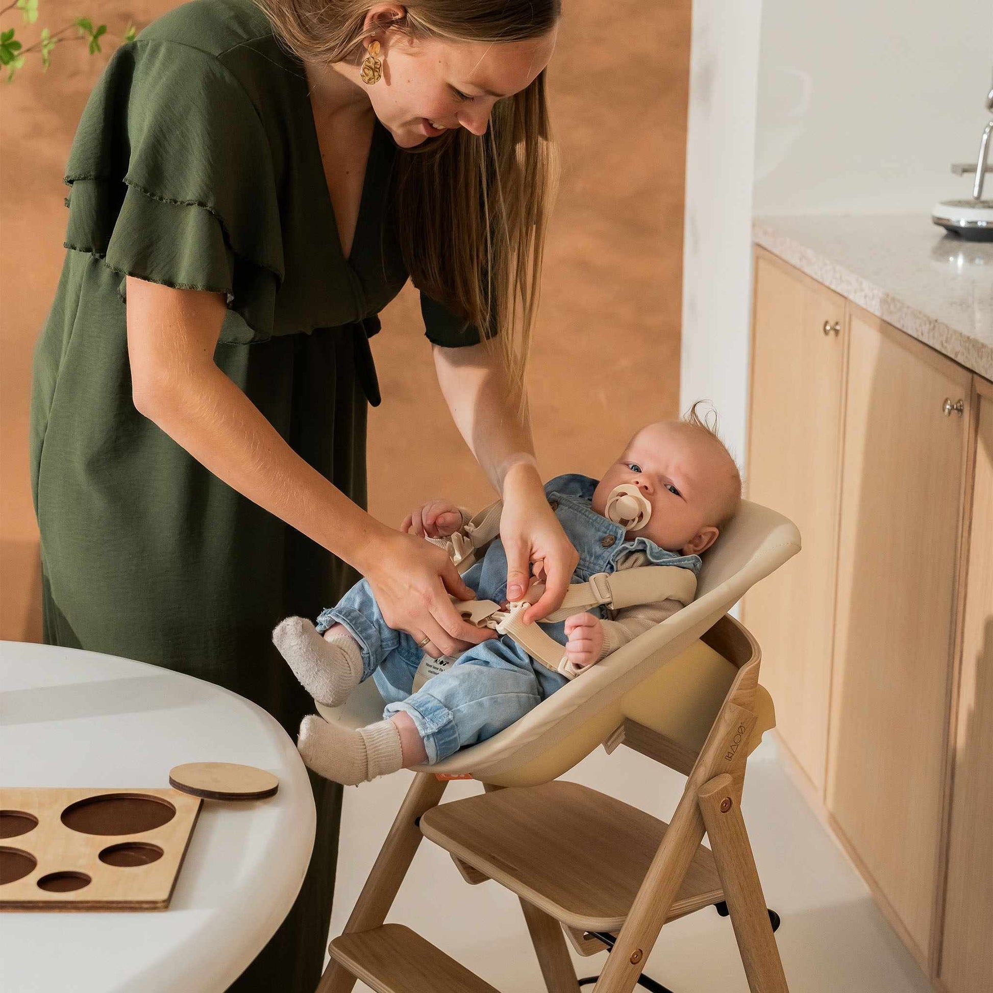 Beautifully simple and thoughtfully designed, the KAOS Klapp Oak High Chair in shade Natural blends Scandinavian style with everyday practicality. Crafted from solid oak, its warm natural finish and clean lines make it a stunning addition to any modern dining space.