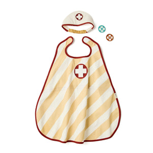 Beautifully crafted with a velcro fastening for easy wear and removal, it’s perfect for quick-paced changes. Wonderfully reversible, it allows your little medical professional to choose which side of the cape to show off as they save the day once again.