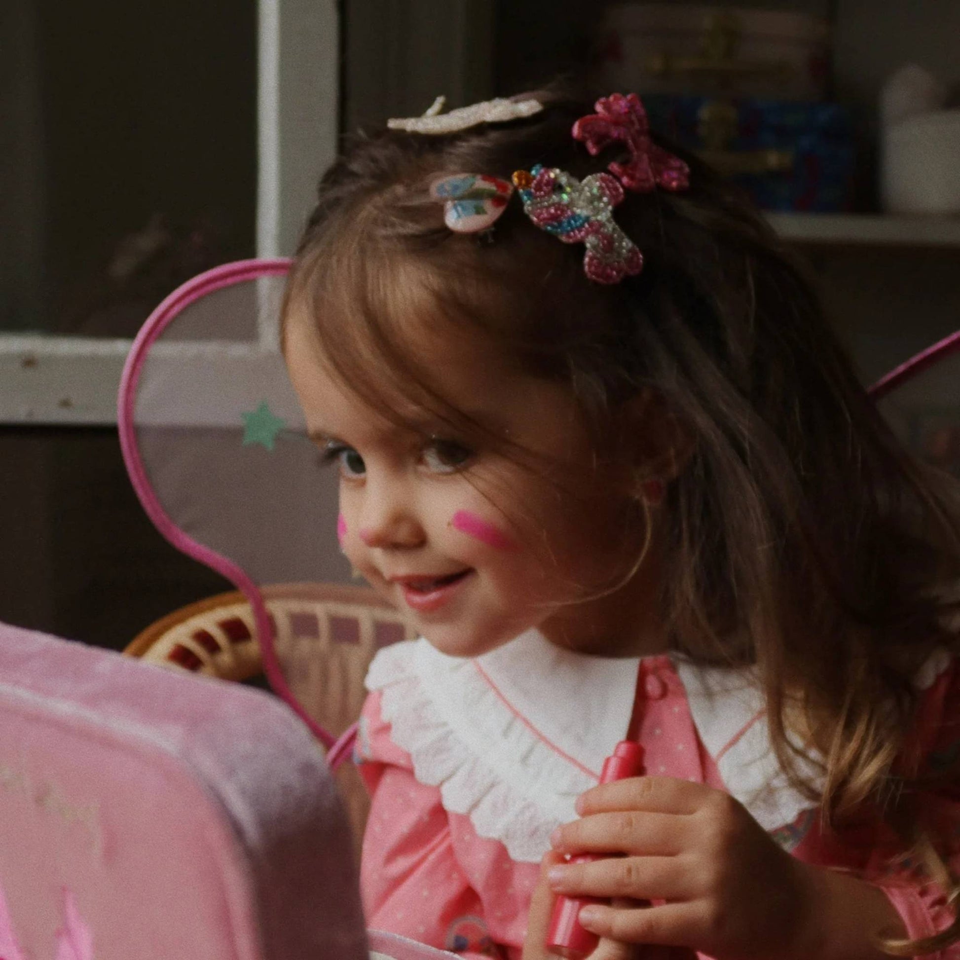 Bring a little magic to your child’s day with the Konges Slojd 2-Pack Unicorn Hair Clips. Each clip features a beautifully detailed unicorn design, handsewn with tiny beads for a whimsical and playful touch to any hairstyle.