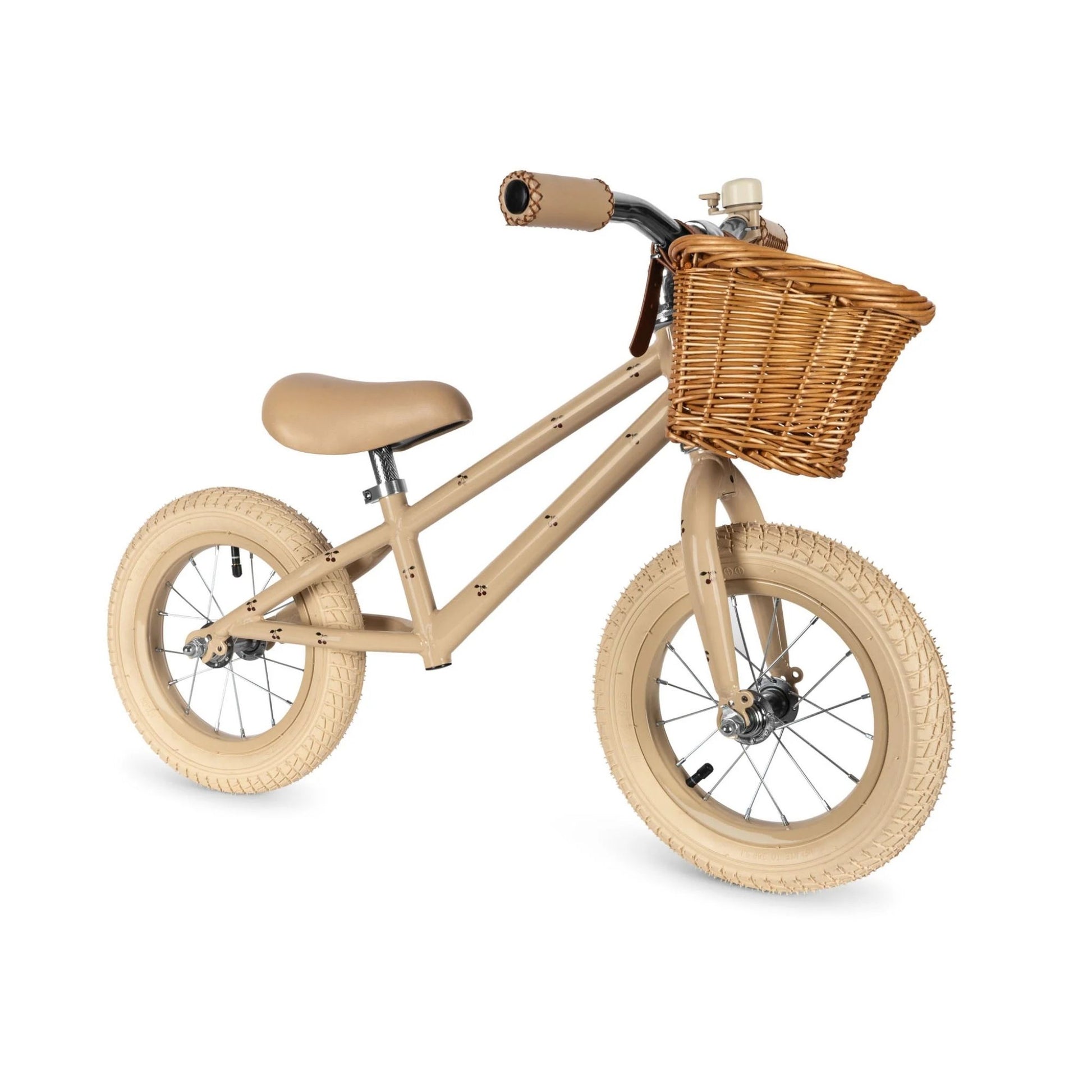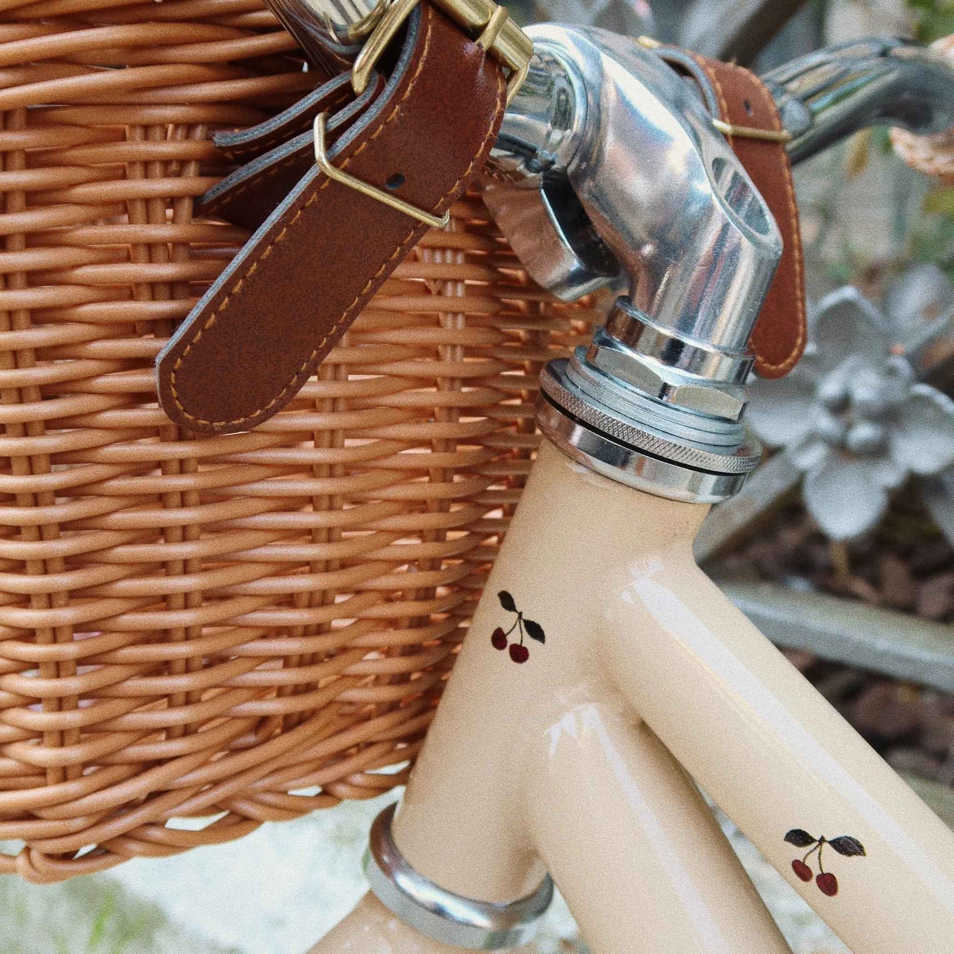 Discover the most adorable Balance Bike from Konges Slojd in print Cherry. This dreamy bike is the sweetest design featuring the iconic Konges Slojd cherry print against a neutral beige background, this is the ultimate aesthetically pretty balance bike.