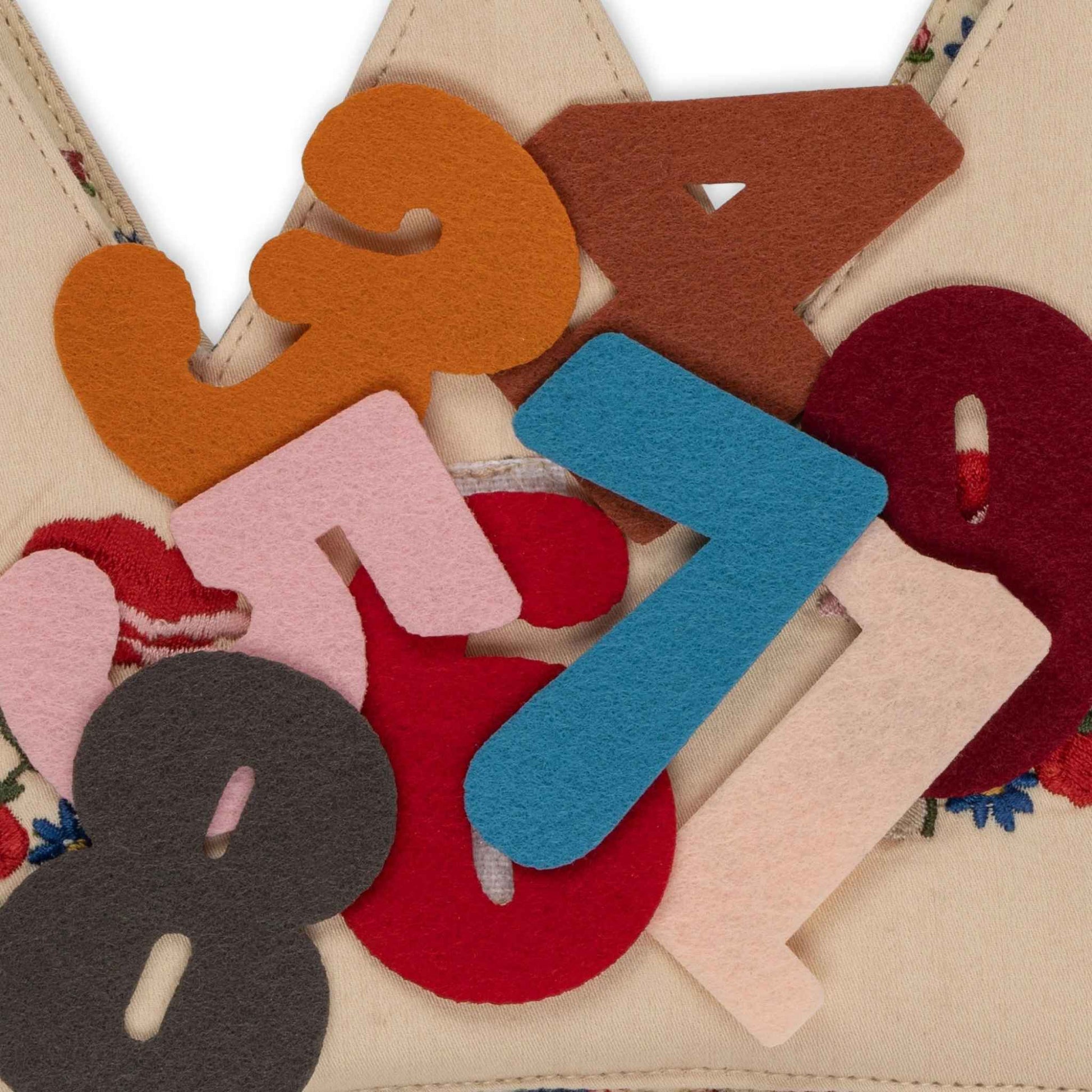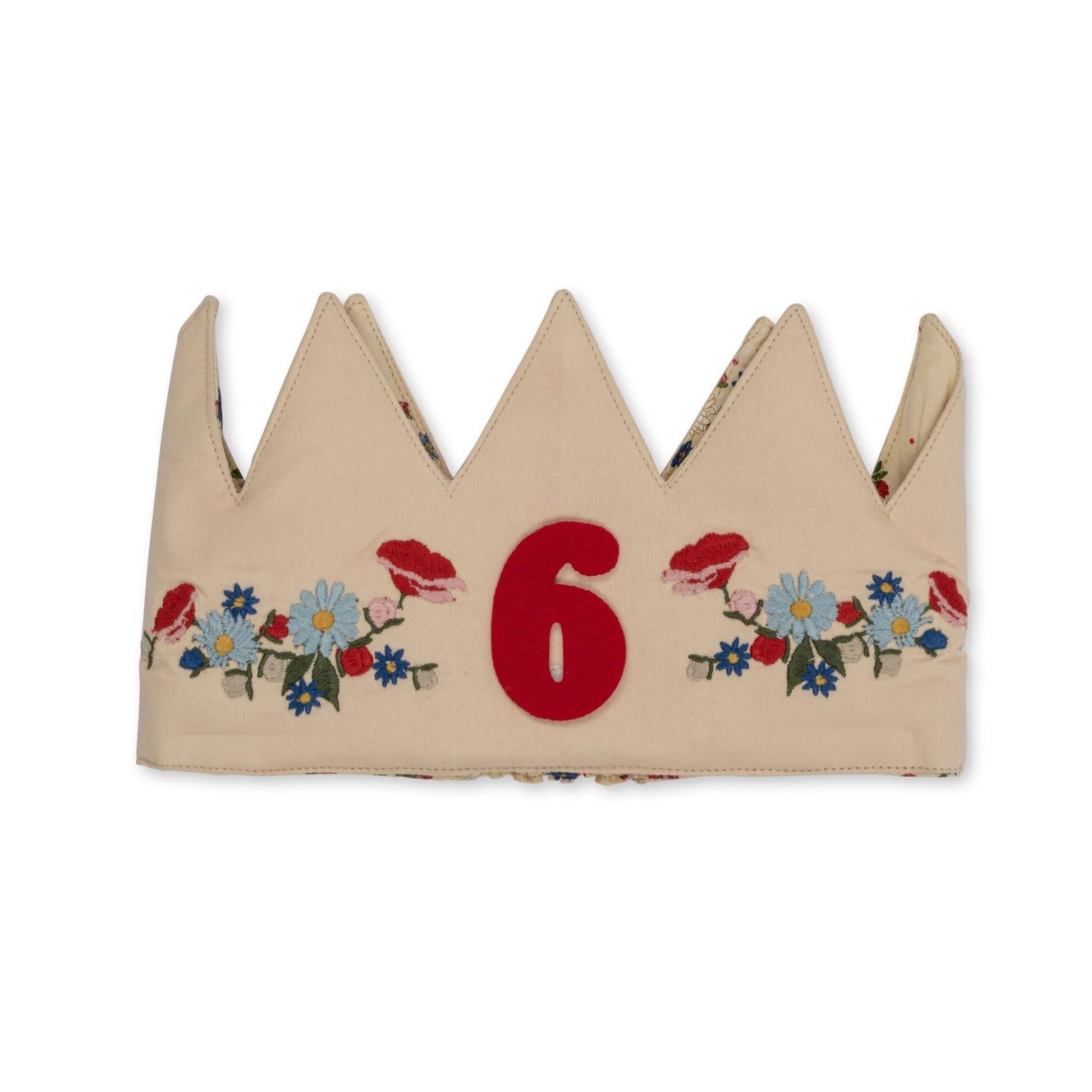 Give the sweetest little birthday gift with the Konges Slojd Birthday Crown in print Flower. This adorable crown can be used year after year for birthdays to come with a range of different numbers that can be swapped with it's Velcro design.