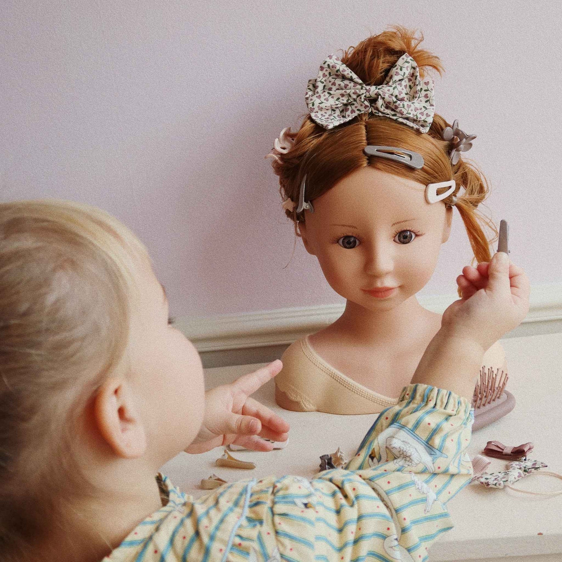 Let your little hairdresser enjoy playing with the Konges Slojd Doll Hair Salon. This adorable hair salon comes complete with a dolls heads with long hair to style and a range of hair accessories to practice including a brush, clips, bobbles and more.