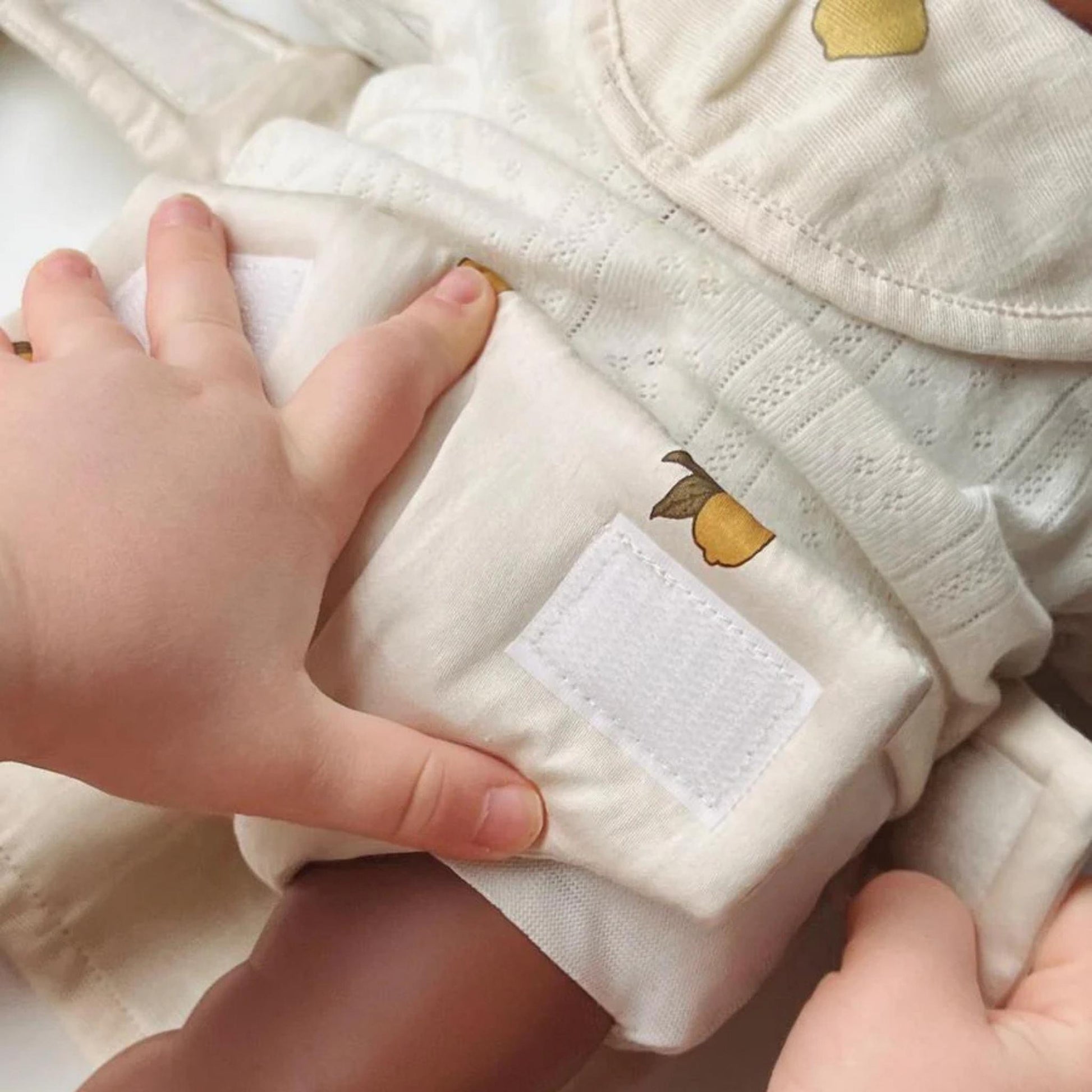Made from soft organic cotton, the design features a trendy lemon print on a beautiful neutral canvas. This dreamy and playful design includes a doll bib, a velcro-fastening diaper, and a matching doll changing mat, making it easy for children to care for their favourite dolls just like a real parent.