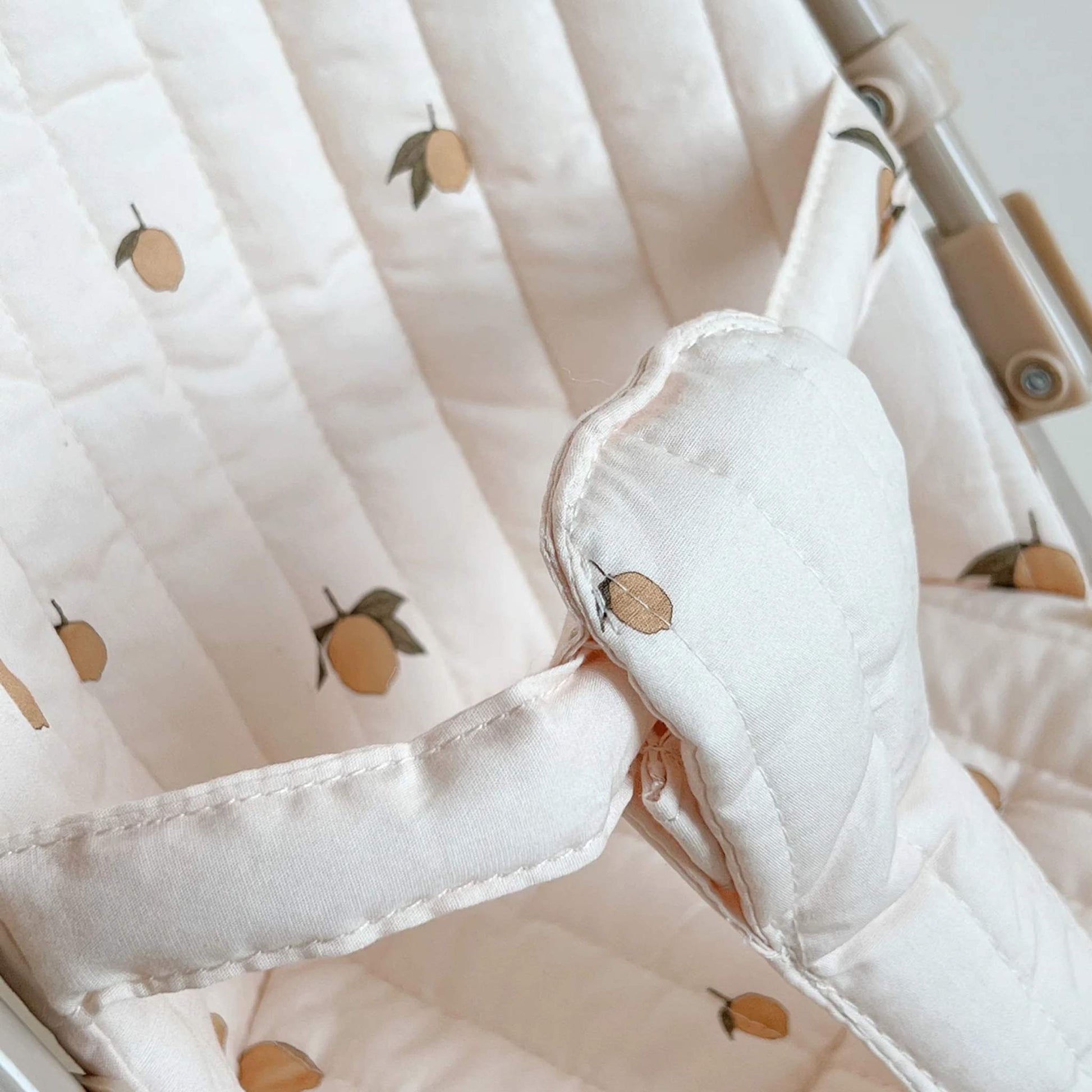 Let your little one take their doll for a walk with the Konges Slojd Doll Stroller in print Lemon. This adorable doll stroller is beautifully designed in a trendy lemon print against a neutral canvas for a gorgeous aesthetic look. This stroller will be cherished by your child.