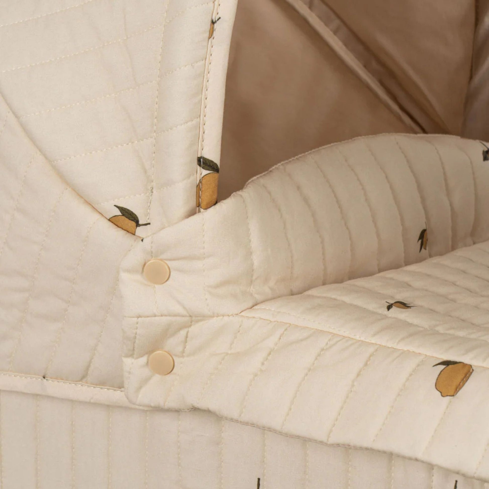 Let your little one take their doll for a walk with the beautifully designed Konges Slojd Minnie Doll Pram in print Lemon. Vintage in it's design, this quality doll pram is easy for little doll parents to manoeuvre. Featuring a trendy lemon print on a neutral creamy canvas.
