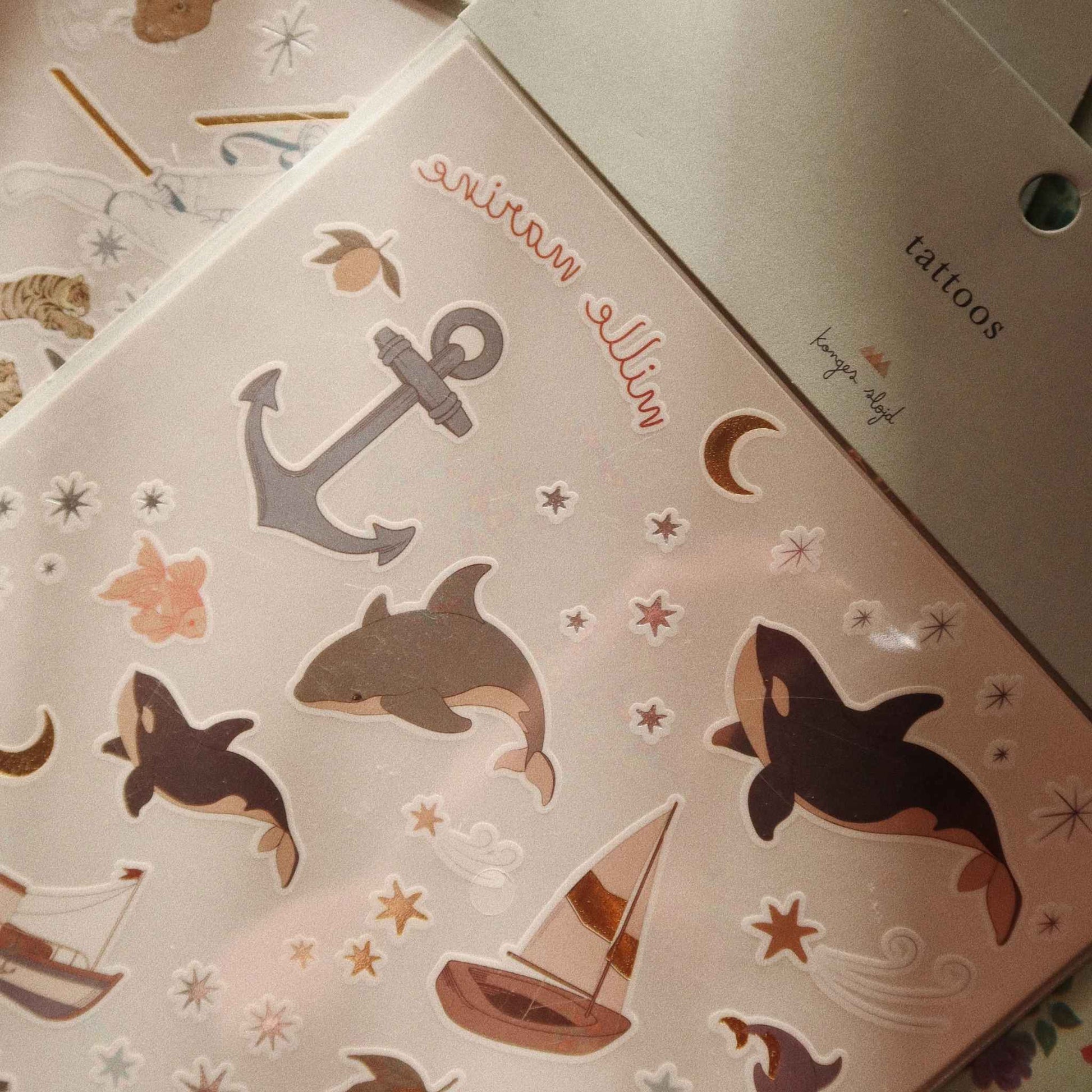 Bring a touch of creativity and playfulness to every day with the Konges Sløjd Tattoos in Blue. These beautifully designed temporary tattoos let your little ones express their personality in a fun and imaginative way. Featuring sweet illustrations of whales, sailboats and more, they’re perfect for parties, or playing dress-up.