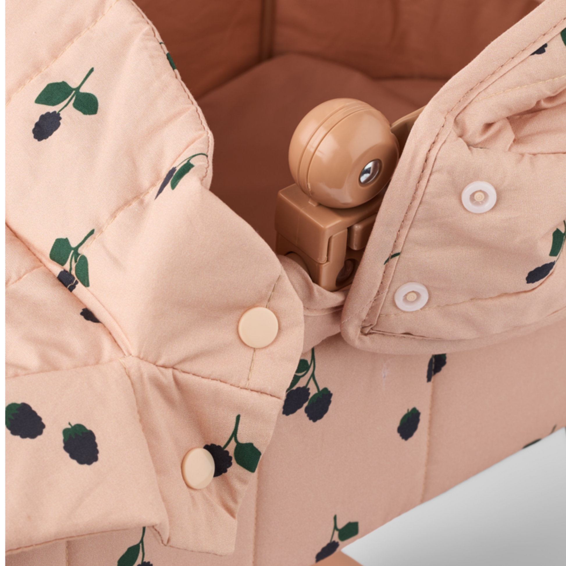 Start the fun with the Liewood Adaline Doll Pram for dolls and teddies, featuring a playful Berry print! Perfect for roleplay and encouraging both social and individual play with all their favourite toys. Complete the set by pairing it with a matching doll stroller and bouncer.