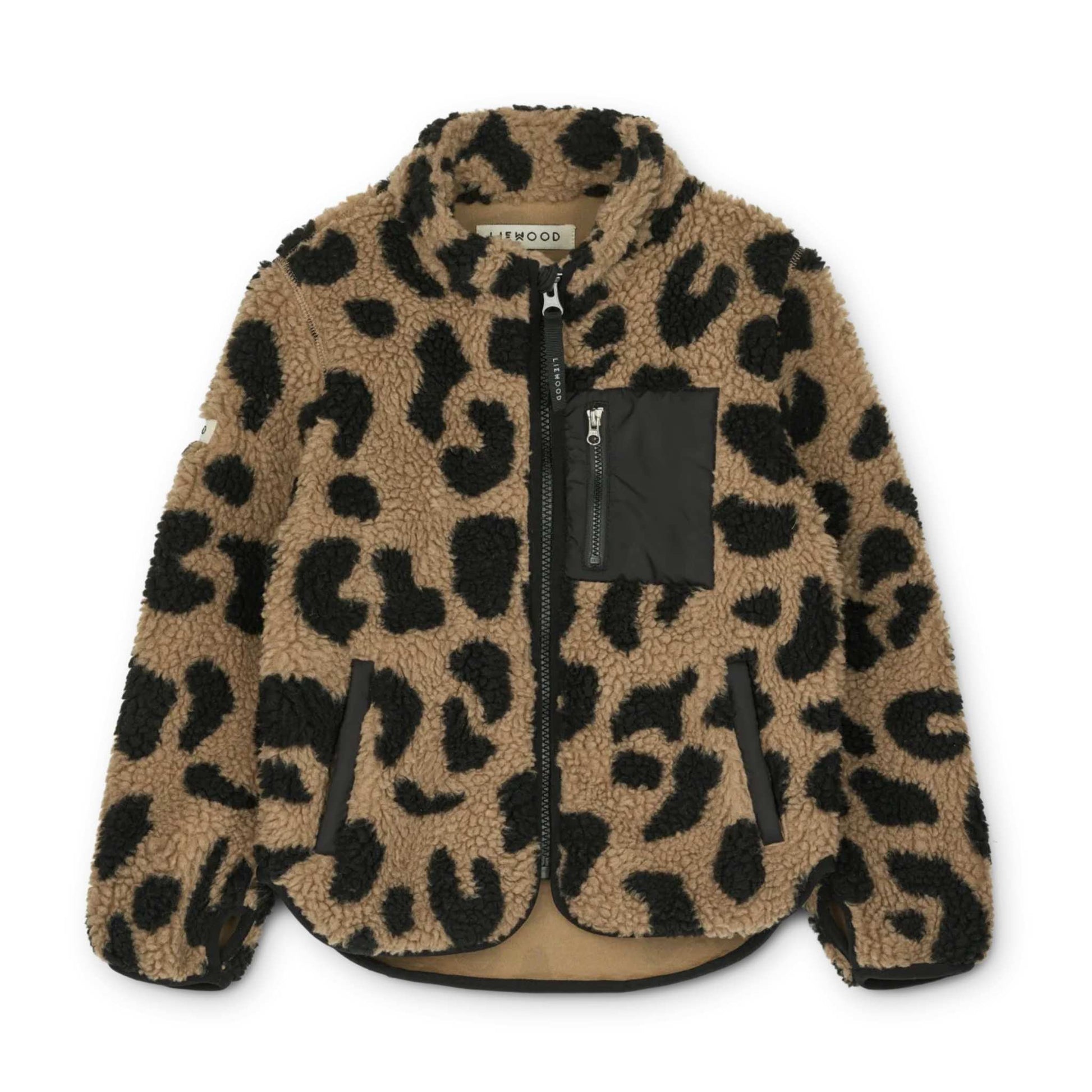 The Nolan fleece jacket is a transitional soft pile jacket with a fun leopard print design. Soft and comfortable teddy fleece for everyday wear and outdoor play. Features front pockets and zipped breast pocket, front zip closure, thumb holes for extra warmth, and flexible elastic bindings.