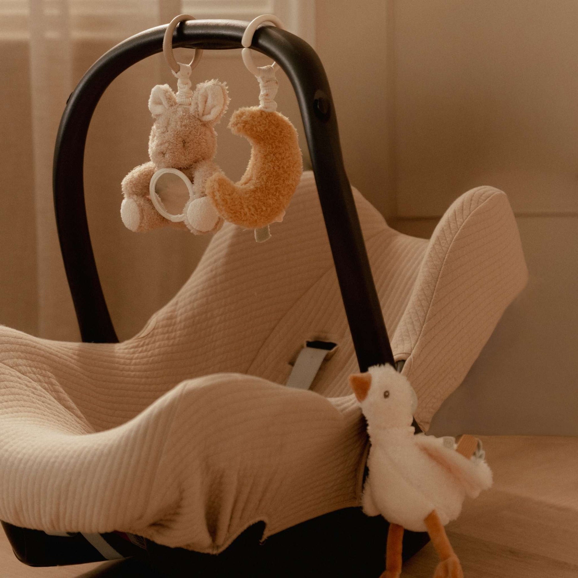 This adorable little set consists of three separate plush hanging toys: a soft goose, a radiant moon, and a sweet rabbit. Each toy features a loop link, making them easy to attach and move between all your little one’s favourite items. From prams and baby bouncers to play gyms, your little one will love being able to have this set within reach.