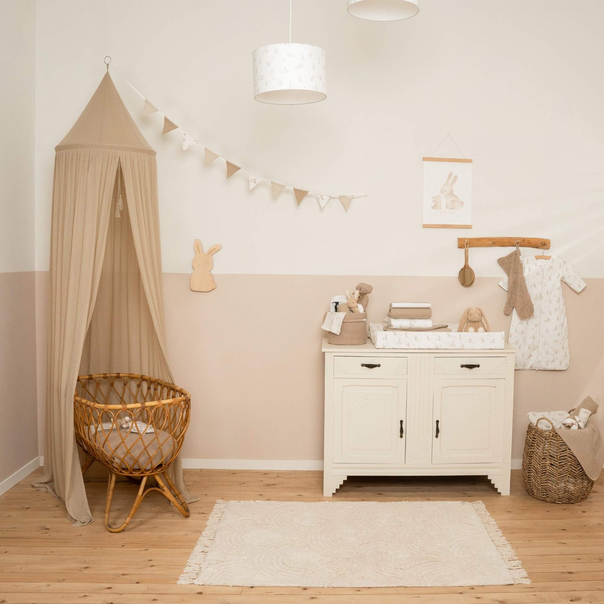 Let your little one have a comfortable feeling and make nights full of sweet dreams with this cosy canopy. Designed in the most gorgeous neutral beige that gives an aesthetically pretty look and makes the perfect addition to your child's room. Made from 100% organic cotton giving it a super soft feel.