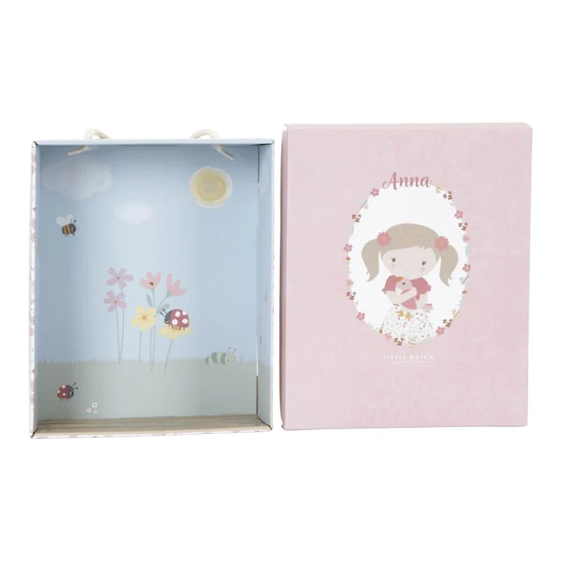The delightful Little Dutch Anna Cuddle Doll is destined to capture the hearts of your little ones. With a penchant for frolicking in flower-filled gardens alongside her feathered friend, Anna quickly becomes a cherished companion. Whether embarking on adventures or seeking comfort during naps and bedtime, Anna's lovable presence is sure to bring joy, and her charming storage box makes her an excellent gift choice.