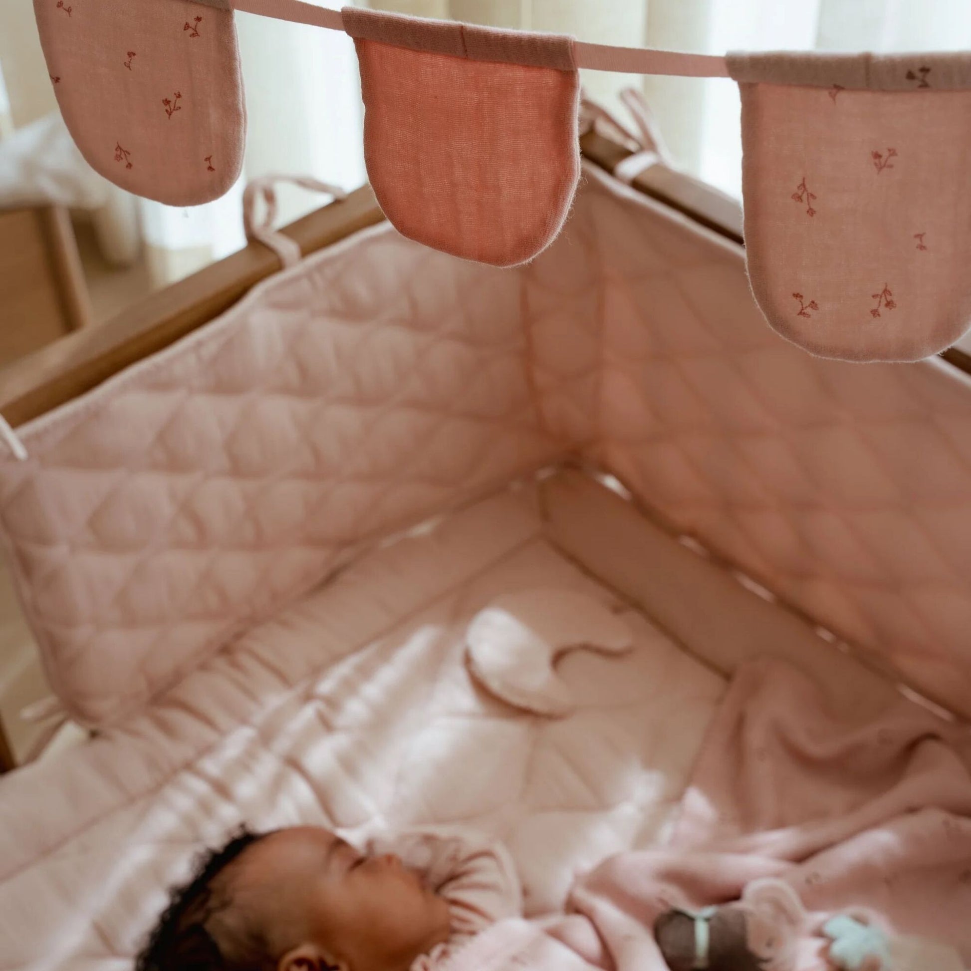 Add a soft touch to your baby’s nursery with the Little Dutch Garland in Pure Blossom. This sweet garland features round flags made from delicate muslin fabric in a gentle blush pink tone, bringing warmth and elegance to any space.