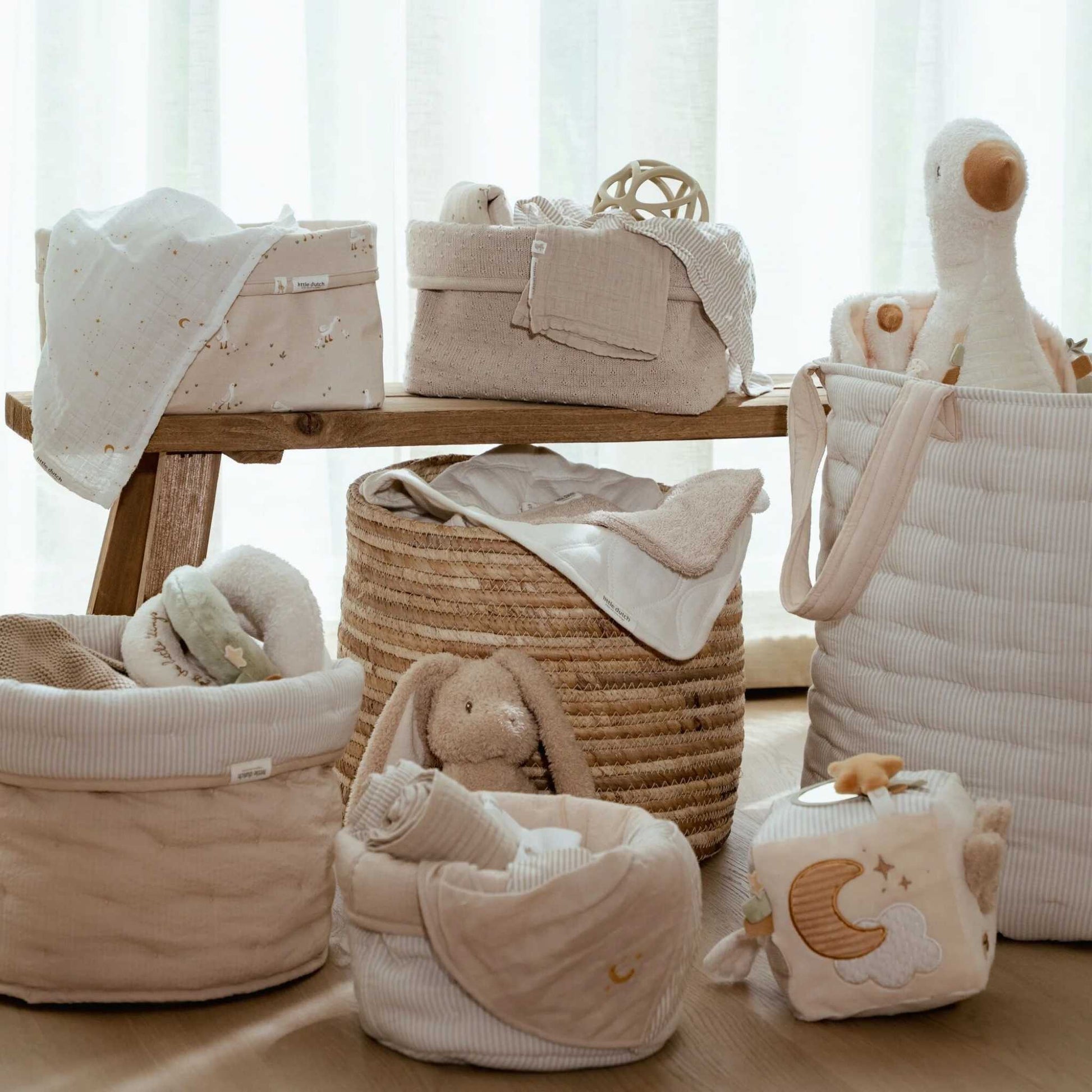 Add stylish comfort to your little one's daily routine with these sweet Muslin Squares from Little Dutch. Crafted from 100% organic cotton, the material is super-soft and hydrophilic, absorbing moisture quickly to keep your little one dry and comfortable. Small yet mighty, these muslins will become ever-present in your daily routine, mopping up spills, as a base layer quick changes, or as a handy feeding cover. This 2 pack features two designs with a Pure Soft Beige theme - one with a refined stripe pattern and one in calming beige.