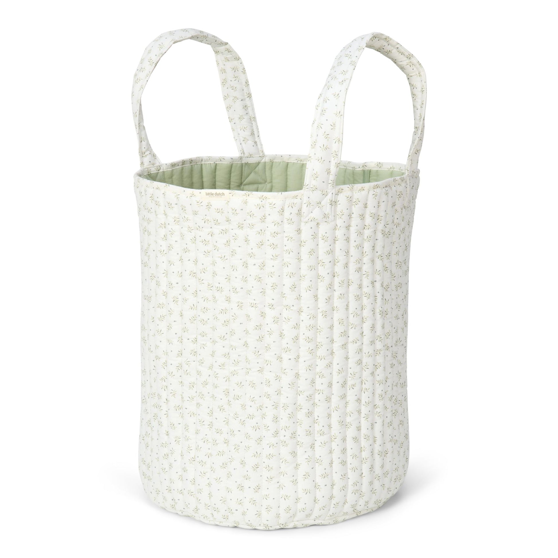 Create a calm, organised space with the generously sized Large Storage Basket from Little Dutch. This thoughtfully designed reversible basket offers two looks - one side features a scattering of blueberry leaves on a light background, and the other a fresh green wash, making it easy to match with your existing décor. Softly padded walls help it hold its cylindrical shape, while two looped handles make it easy to transport between spaces.