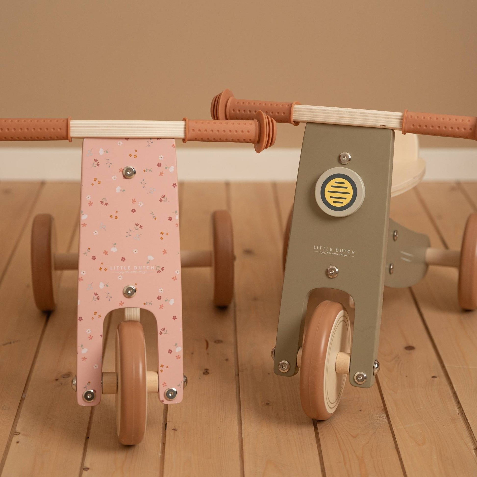 Let your little adventurer enjoy the Little Dutch Wooden Tricycle in Pink, this sweet and safe first trike is perfect for little explorers. Designed with a dreamy pink floral pattern, this tricycle combines timeless style with practicality.