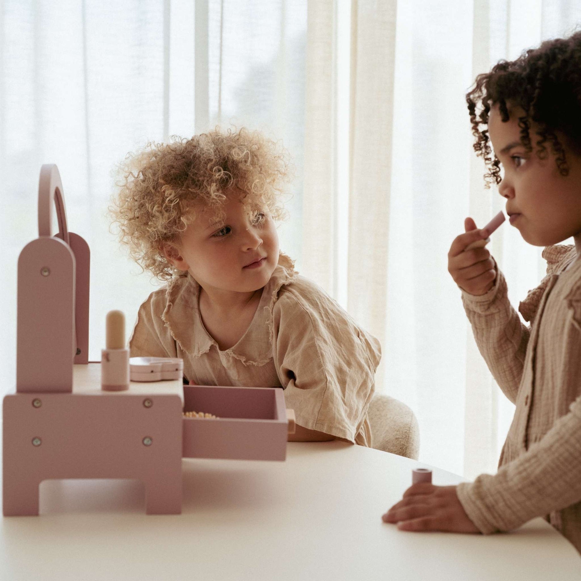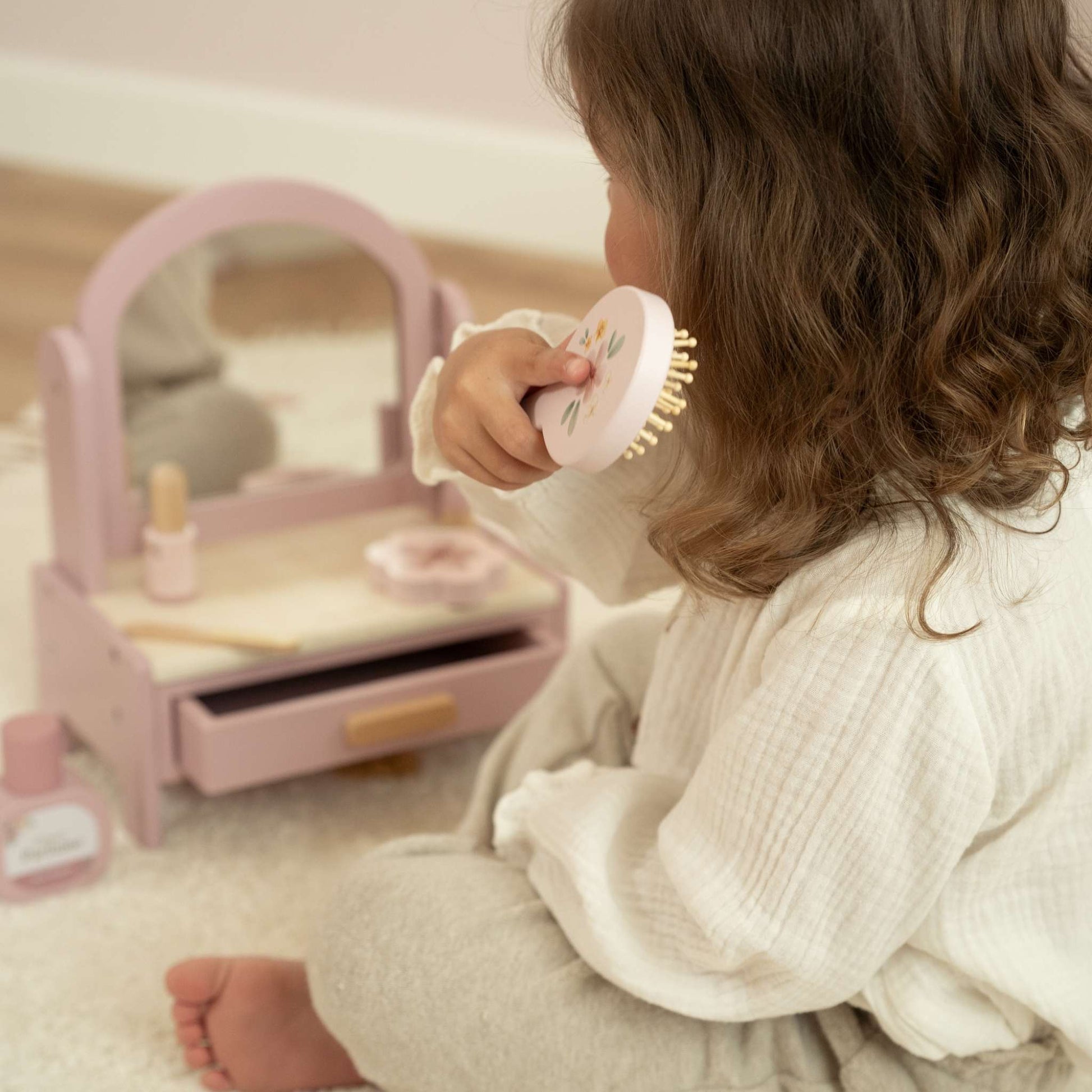 Let your little make-up artist discover a world of personal pampering with the Little Dutch Small Wooden Vanity Table. This perfectly portable vanity allows your child to get ready for all the fancy photo shoots, royal balls, and movie premieres they simply must attend, wherever they go.