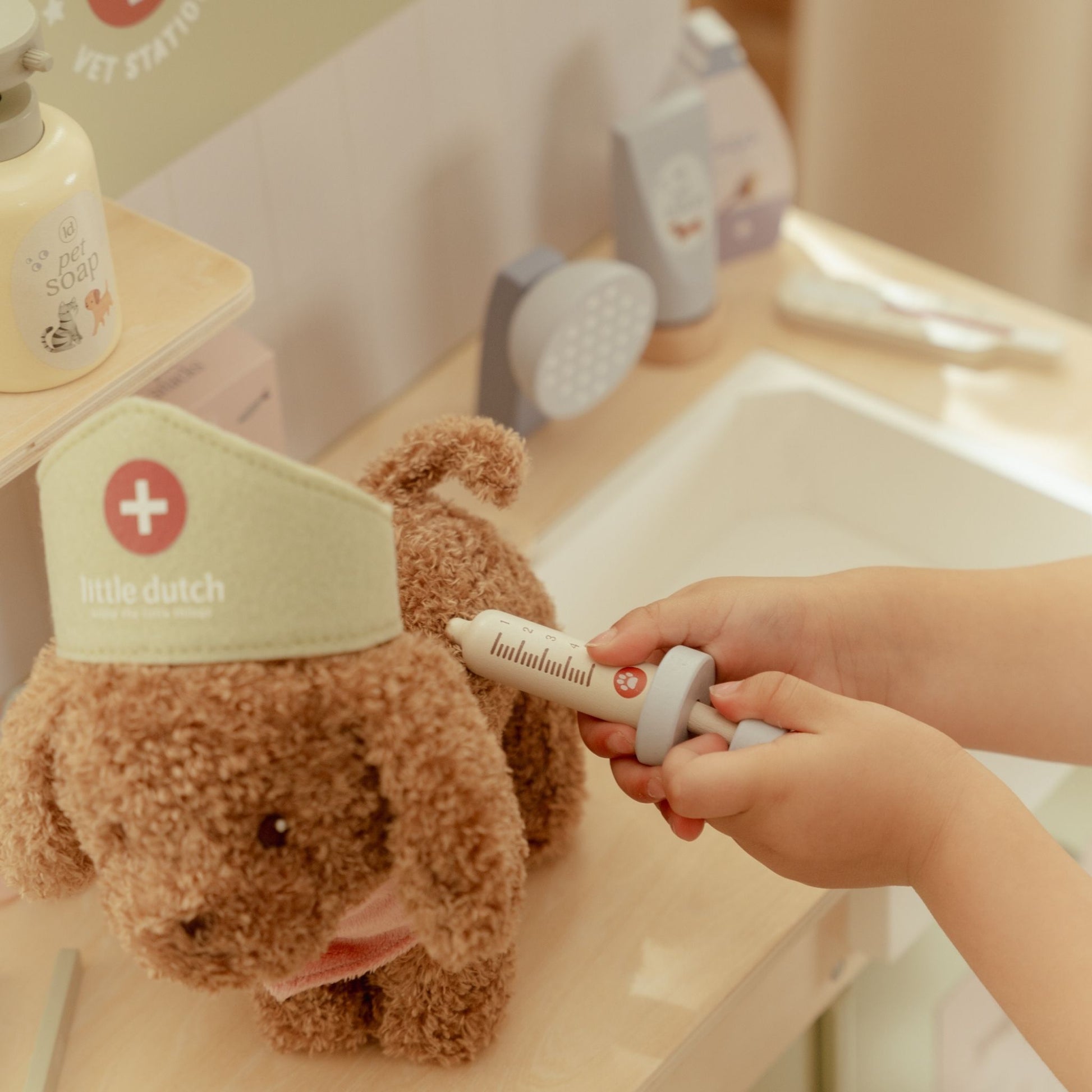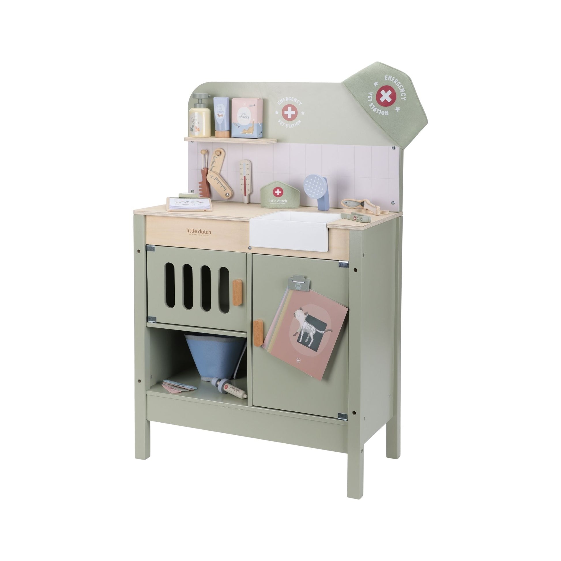 Set up your very own animal clinic with the Little Dutch Wooden Veterinary Practice, the perfect place for little carers to treat cuddly patients, bandage bumps and bruises, and give the very best care to their furry friends.