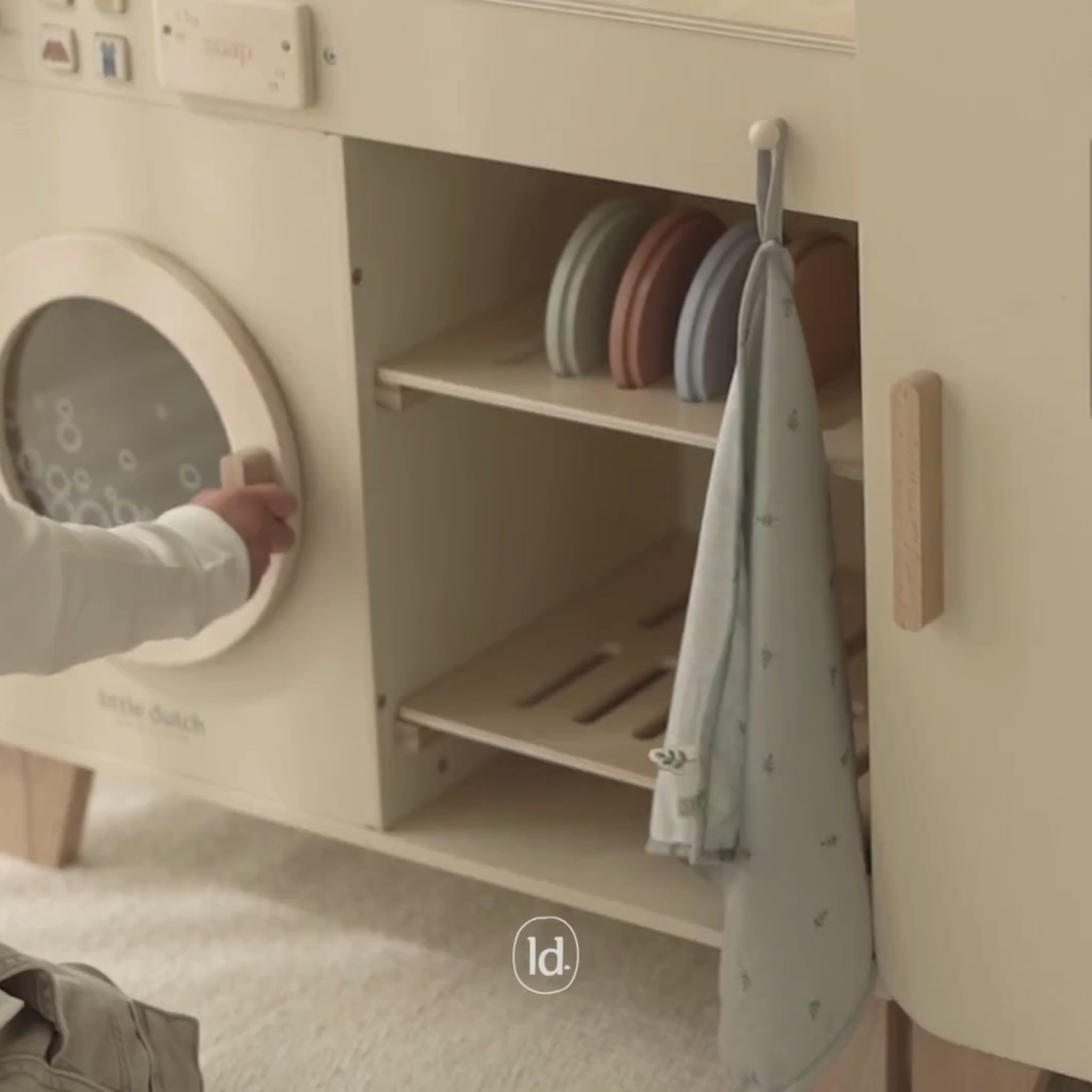Finished with a set of wooden plates, mugs, soap, washing machine liquid bottles and a drying towel, this set has everything your little one will need for endless hours of fun.