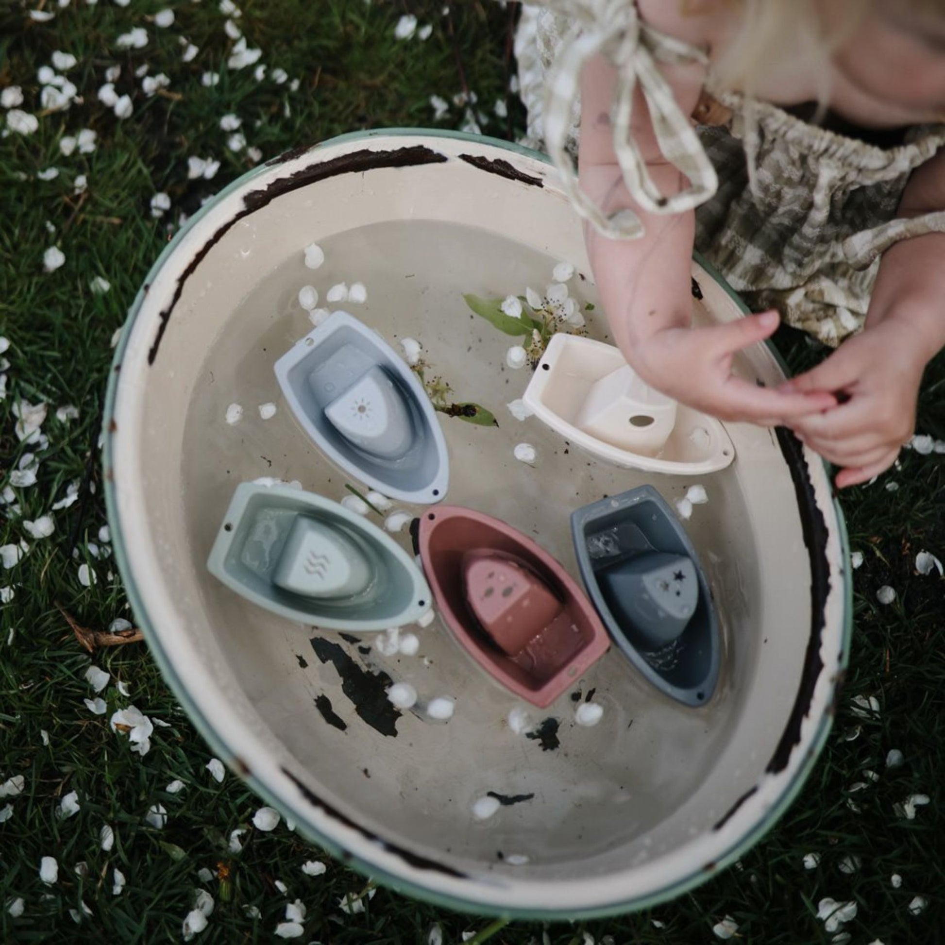 The Bath Boat Play Set includes 5 stackable boats - ready for play on land or in water! Set sail in the bath, with the buoyant boats setting the scene for an exciting adventure. The boats are attachable with miniature tow bars - forming a cute boat train for added fun. Outside of the water, they slot into one another vertically, developing fine-motor skills and concentration.