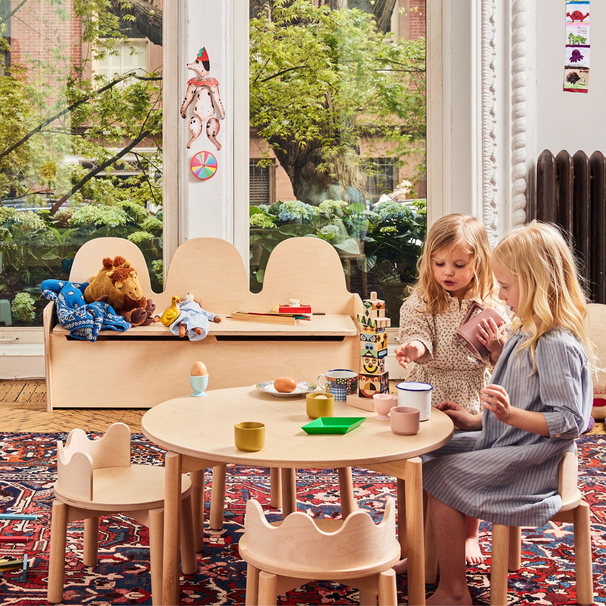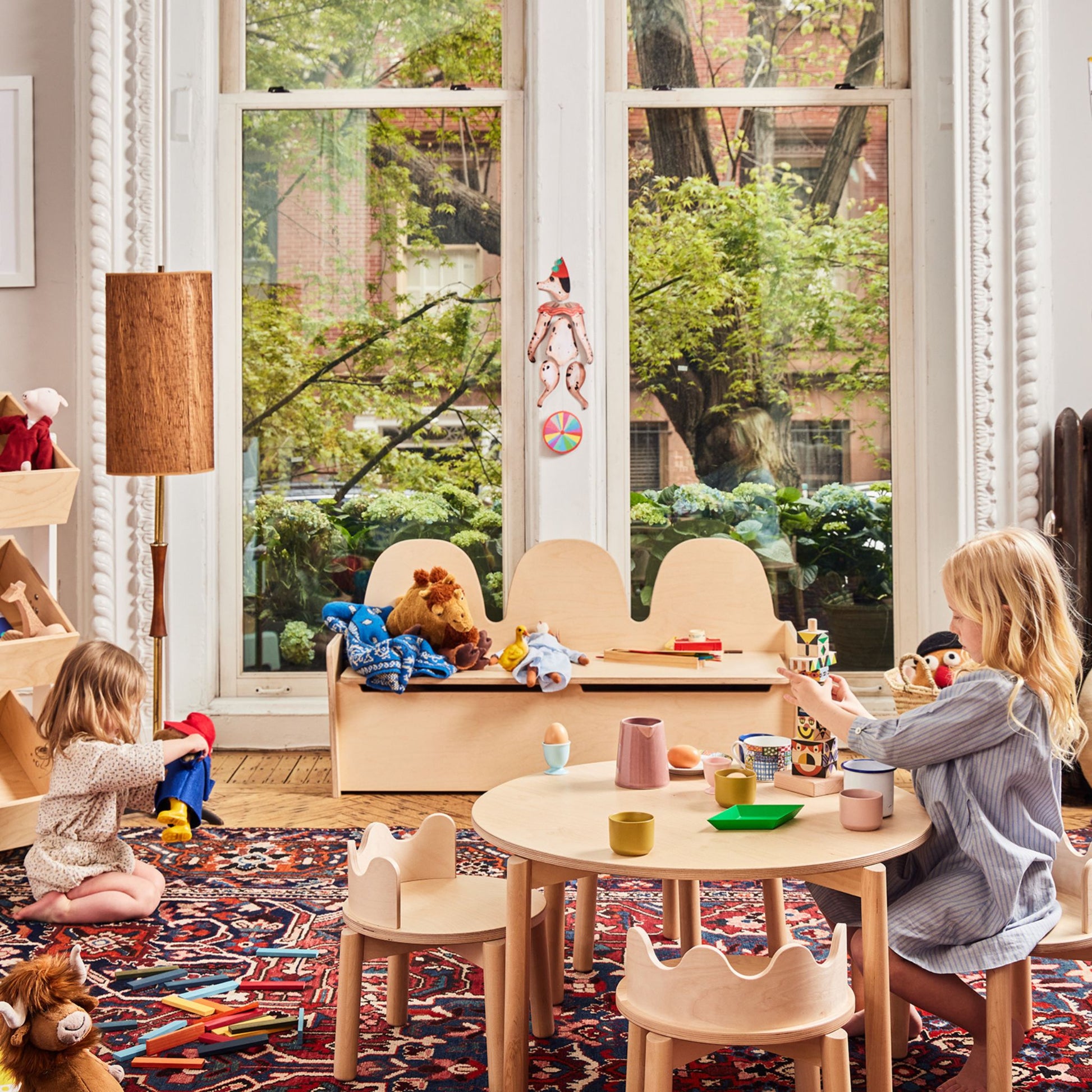 The Camel Storage Bench from Oeuf NYC combines aesthetic charm with clever functionality, allowing little ones to play a fun role in keeping your space tidy. Backed with intricately carved wooden waves and a wide seat, it becomes the perfect spot for children to rest or to sit while they slip shoes on and off.