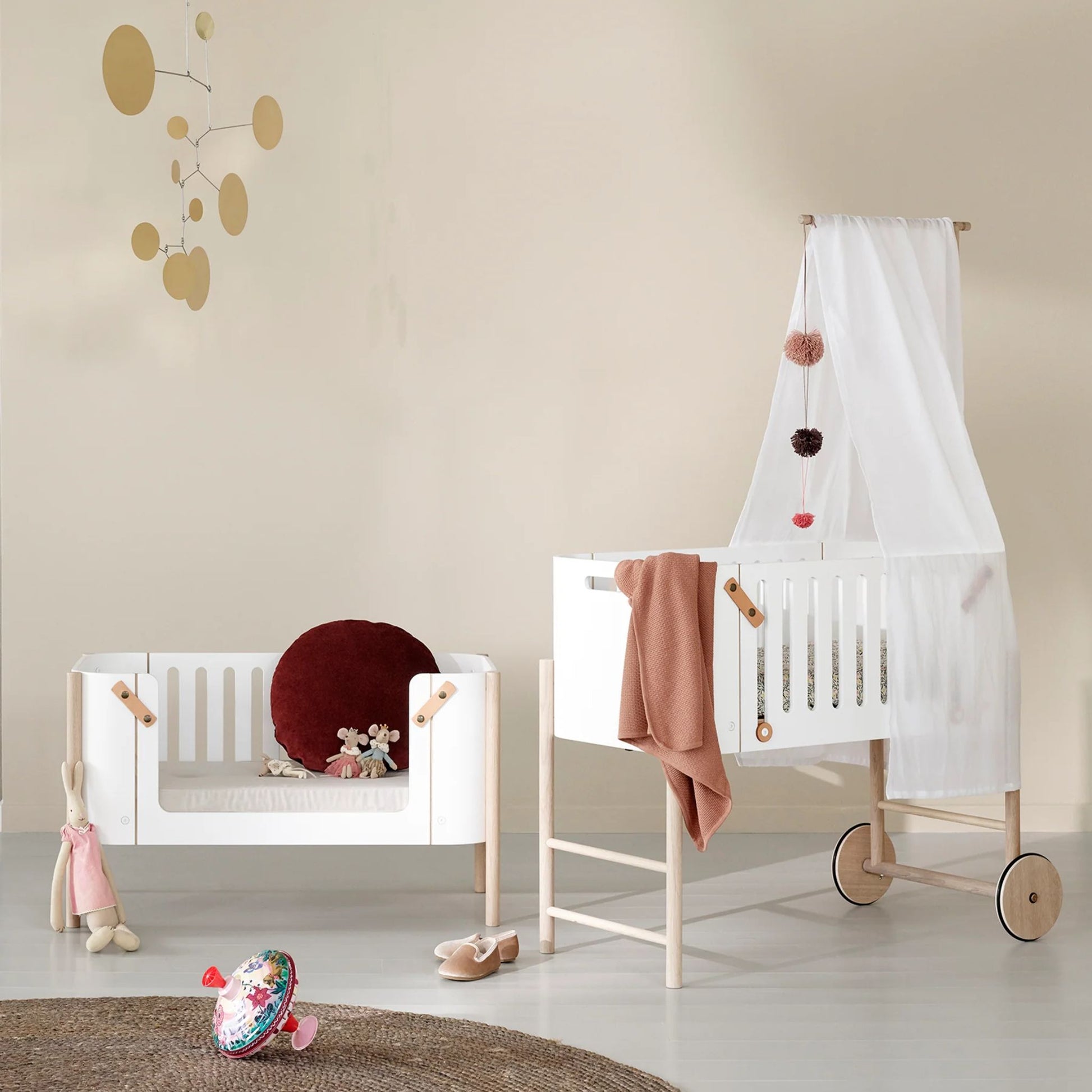 The Wood Co-Sleeper from Oliver Furniture is designed to serve both parent and baby with the perfect balance of closeness and comfort. The continuous height-adjustment ensures the front side of the Co-Sleeper securely couples with the parents bed, providing proximity while maintaining safety and supporting quality sleep.