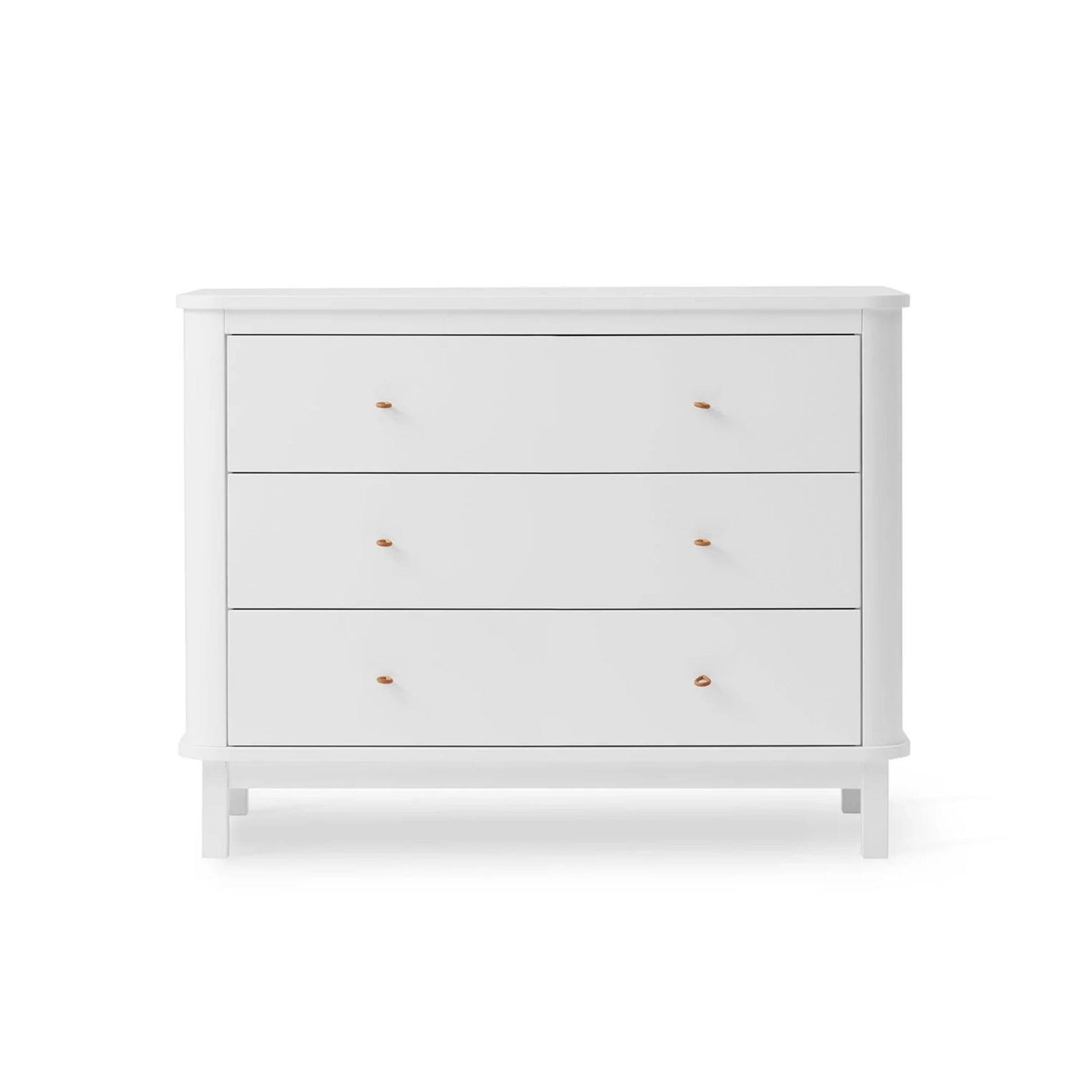 Add grace and elegance to your little one's bedroom with the Oliver Furniture 3 Drawer Dresser in White. Rounded edges and a crisp white finish imbue the drawers with a sophisticated yet minimal feel. harmoniously complementing a range of home décor choices. The three generously-sized drawers are each divided into two compartments, allowing you to effortlessly organise your child's clothes, removing friction from future changes.