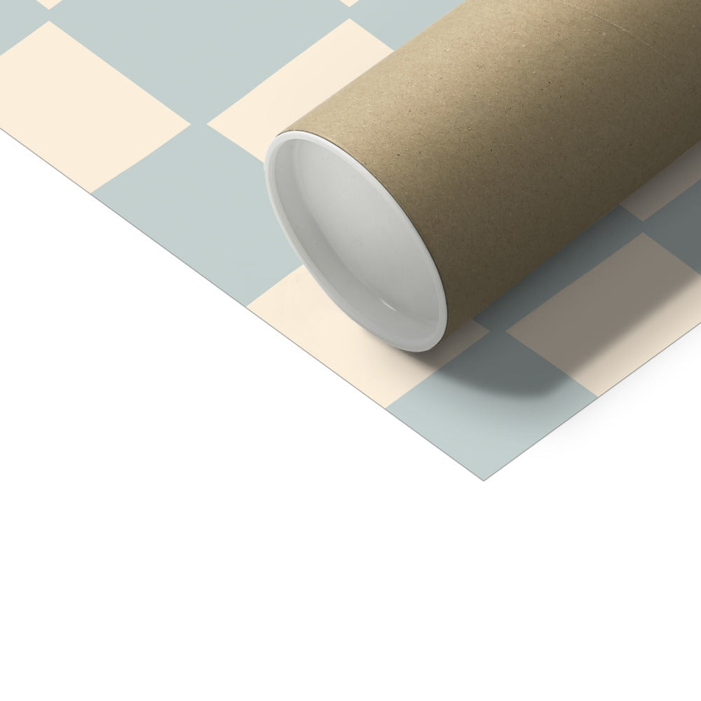 Designed on a blue and white checked background, featuring an elephant head in the centre of the print. This sweet print would make the perfect gift for your little ones bedroom, nursey or playroom.