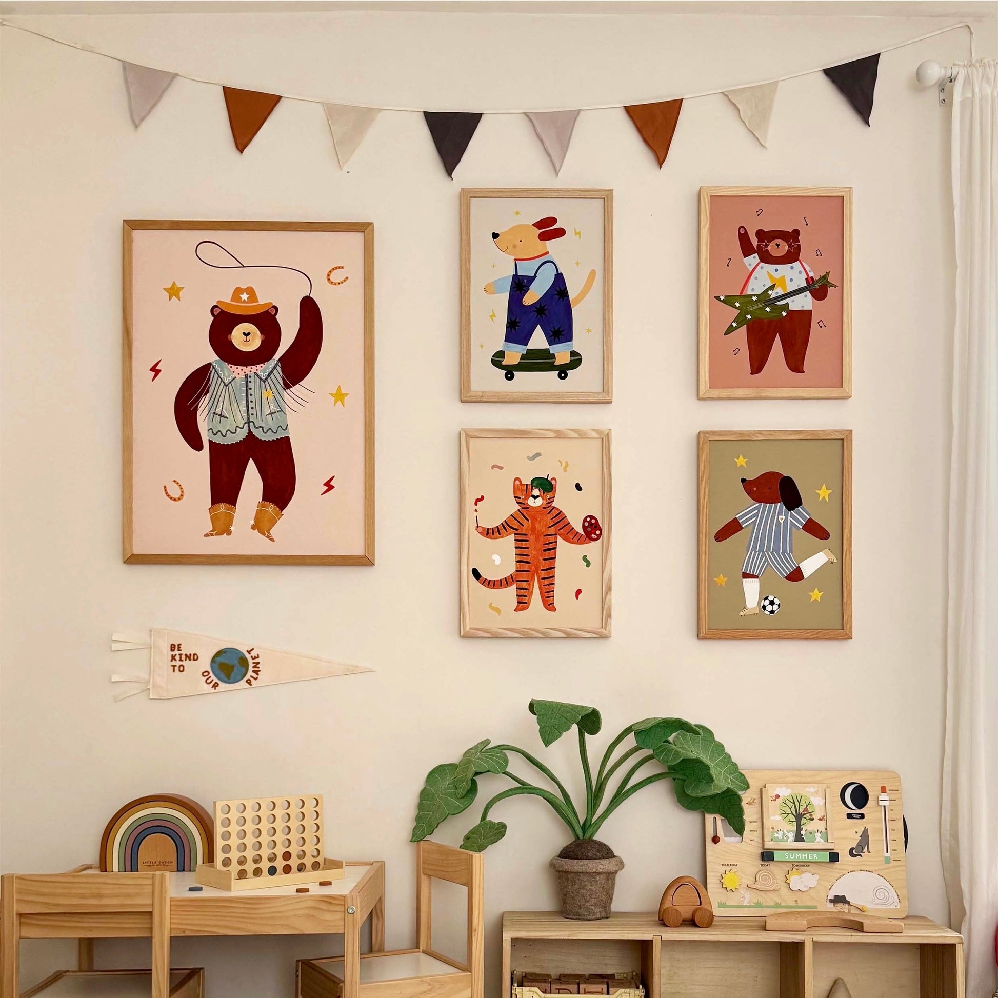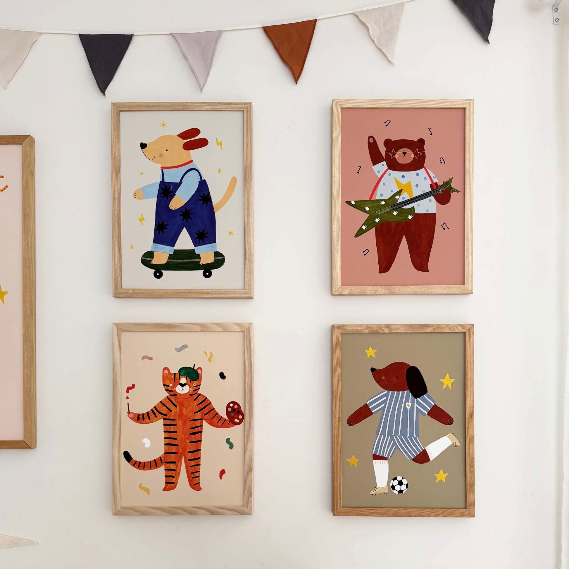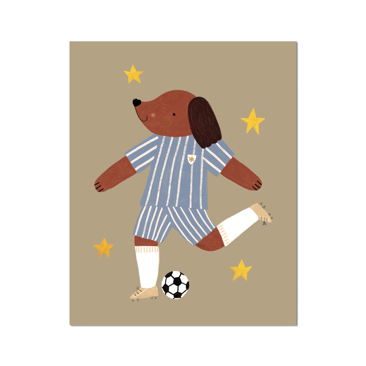Playful, sporty, and full of personality, the Kid of the Village Footie Pup Fine Art Print in Blue Stripe is the perfect piece for little football fans. Featuring an adorable football-loving pup dressed in a blue striped football kit, this cheerful illustration adds fun and character to nurseries, playrooms, and children’s bedrooms.