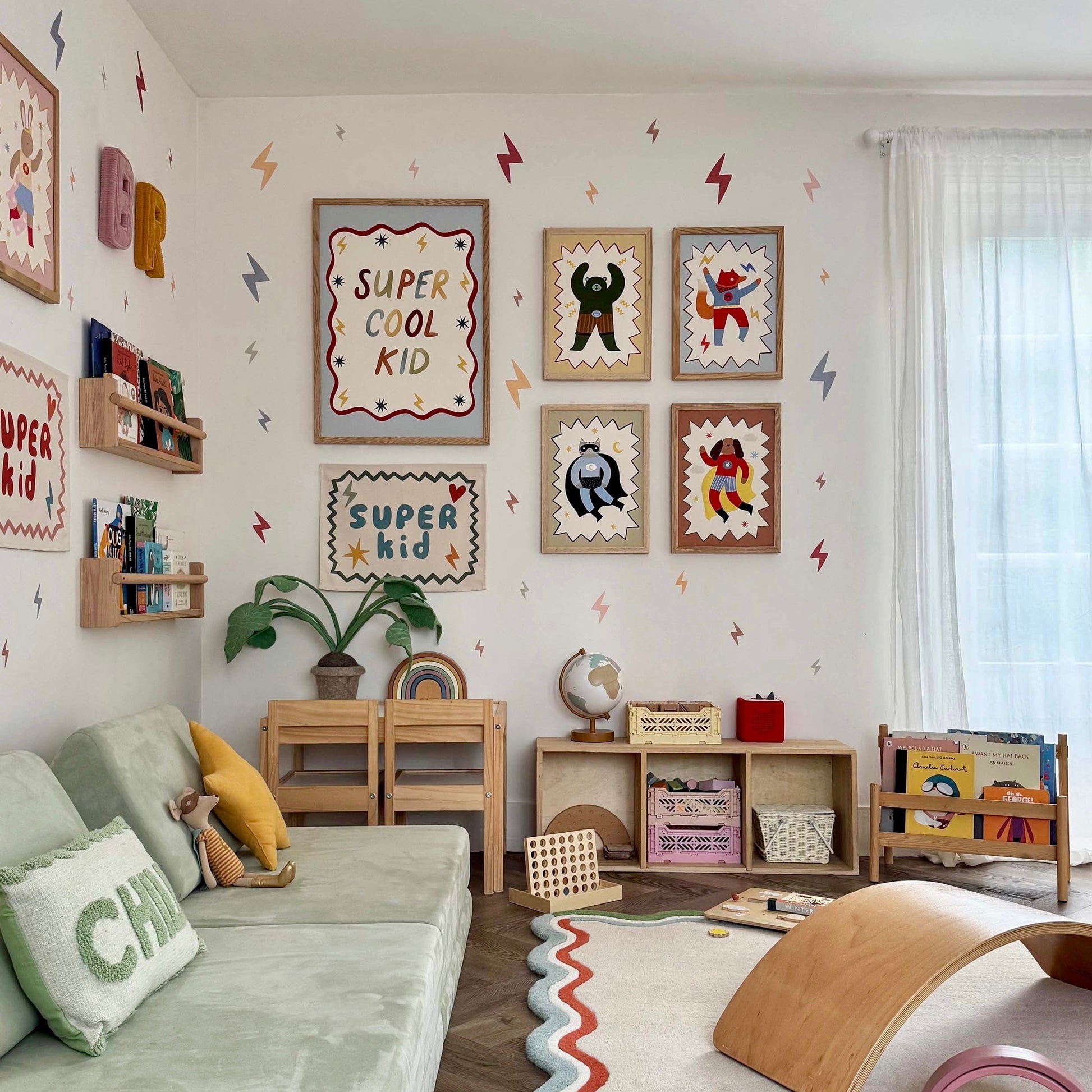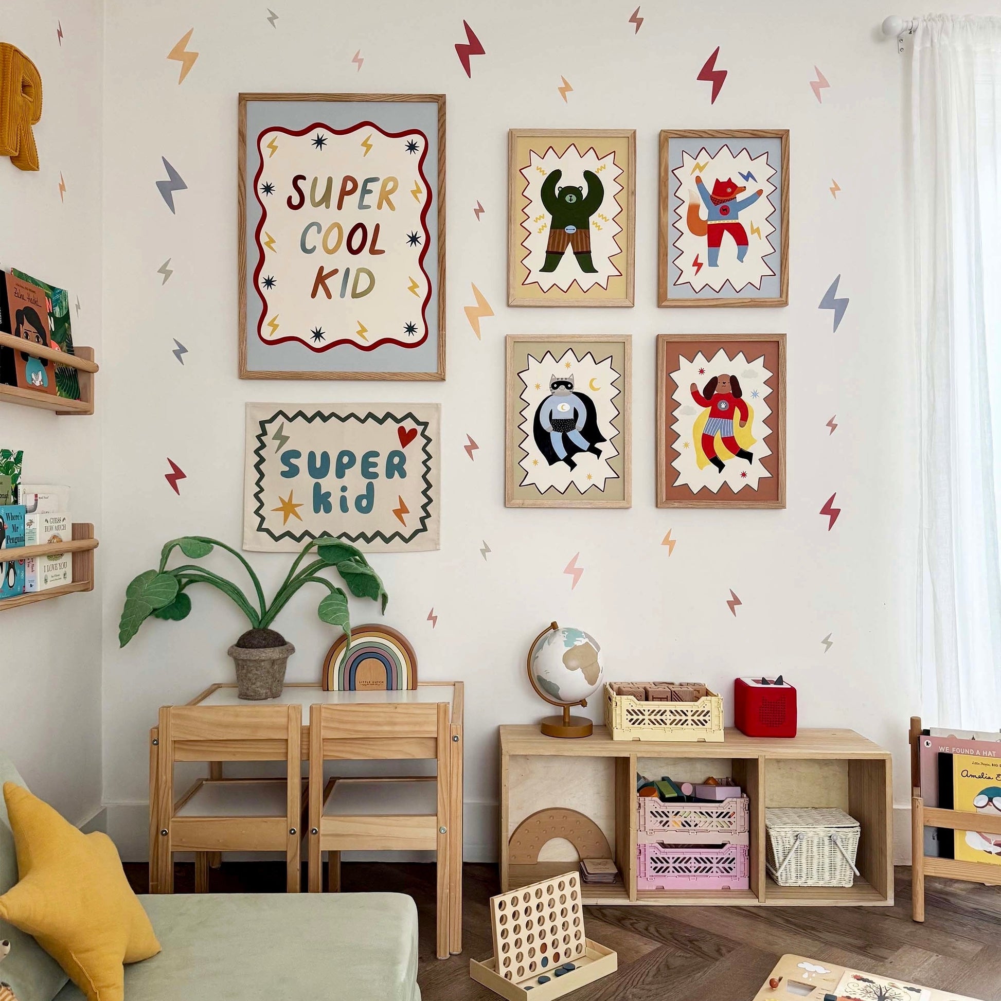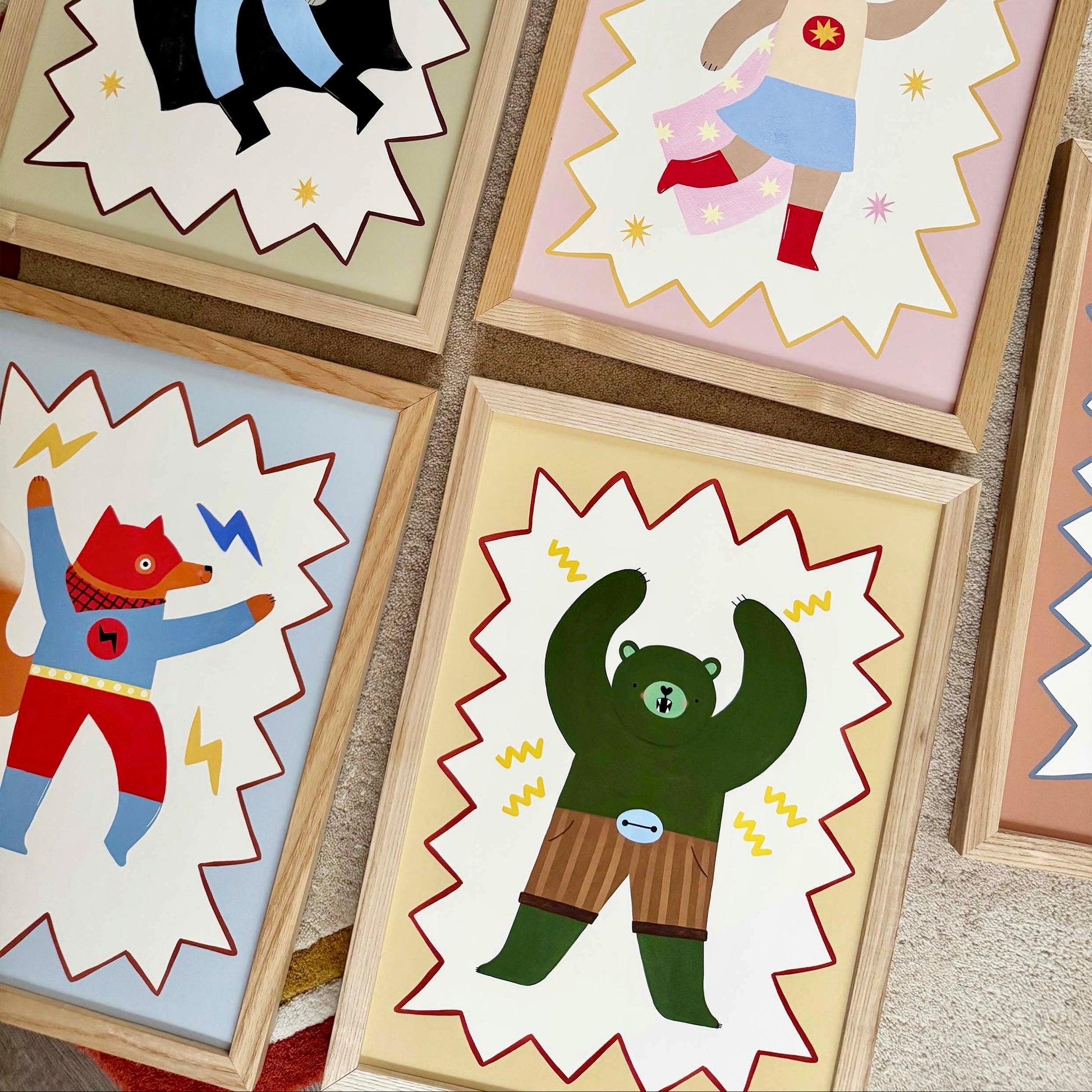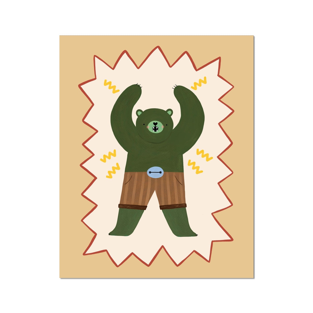 Bring bold imagination and playful hero energy to your space with the Kid of the Village Mighty Cub Superhero Fine Art Print. This striking artwork features a confident green superhero cub, featuring a dynamic zig-zag border. The perfect statement piece for children’s bedrooms, playrooms, or anywhere that could use a little extra courage and colour.