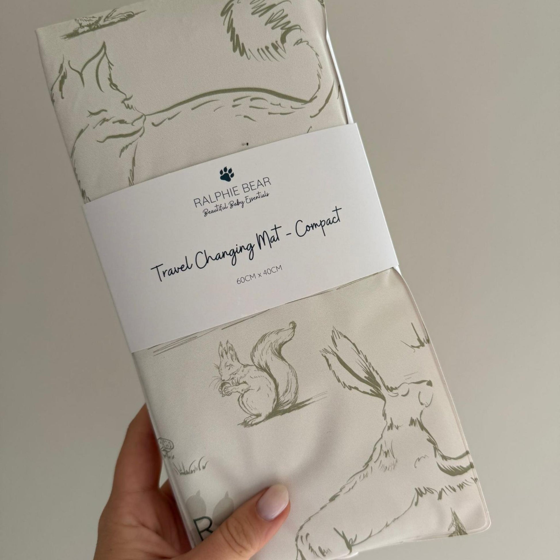 Refresh your everyday parenting essentials with the beautifully designed Ralphie Bear Compact Travel Baby Changing Mat in a gorgeous Woodland print. Thoughtfully crafted with a perfect balance of style and practicality, this elegant, gender-neutral changing mat is ideal for parents on the go. Lightweight and compact, it slips easily into your changing bag, handbag, or stroller so you're always ready, wherever your day takes you.