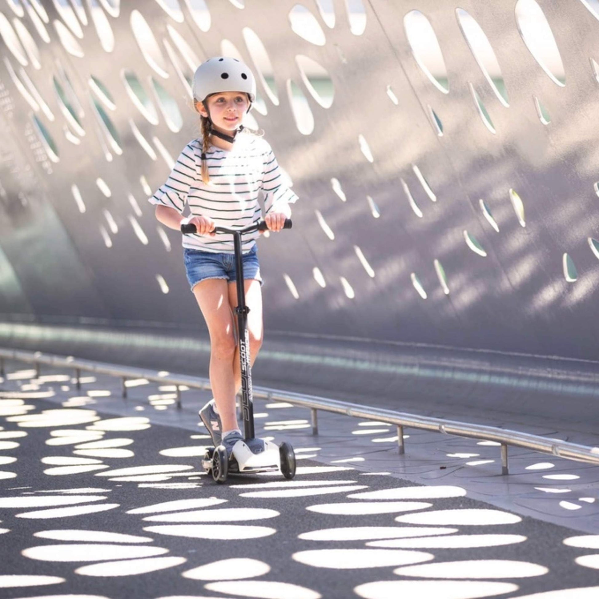 The Highwaykick 5 LED scooter in ash is designed for children aged 5 years and up or from a height of 118cm. This three wheel scooter grows alongside your child with a handlebar that is height adjustable from 60-90cm. The larger scooter deck and wide rear wheel offers support and stability for older children and with a maximum load of 80kg it's built to last right up until their teenage years.