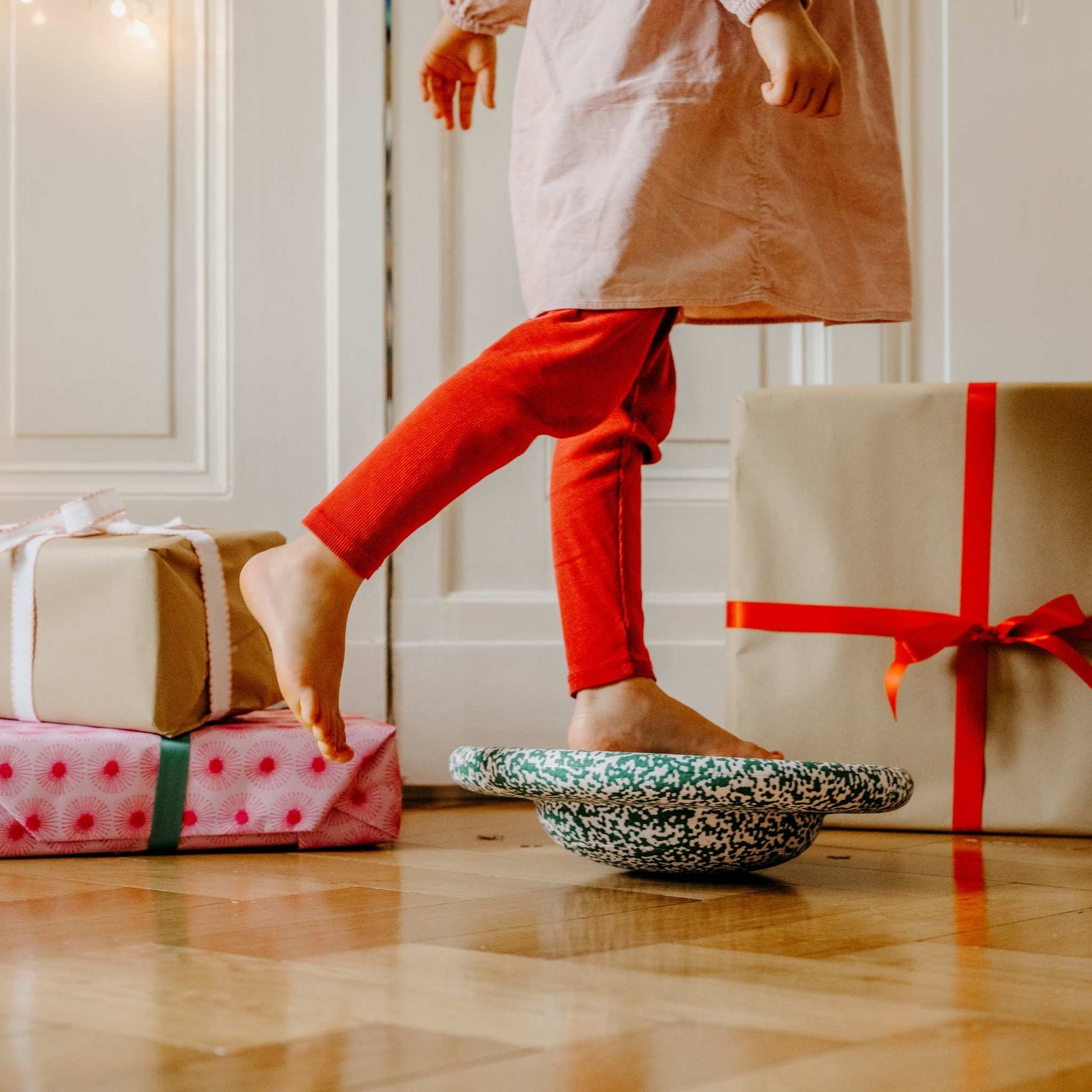Find the perfect balance at Christmas with the festive Dark Green & Blush Stapelstein Wobble Board. Sprinkled with pretty specks of green and pink tones this special Christmas edition gives one of Stapelstein's most-loved toys a merry twist.