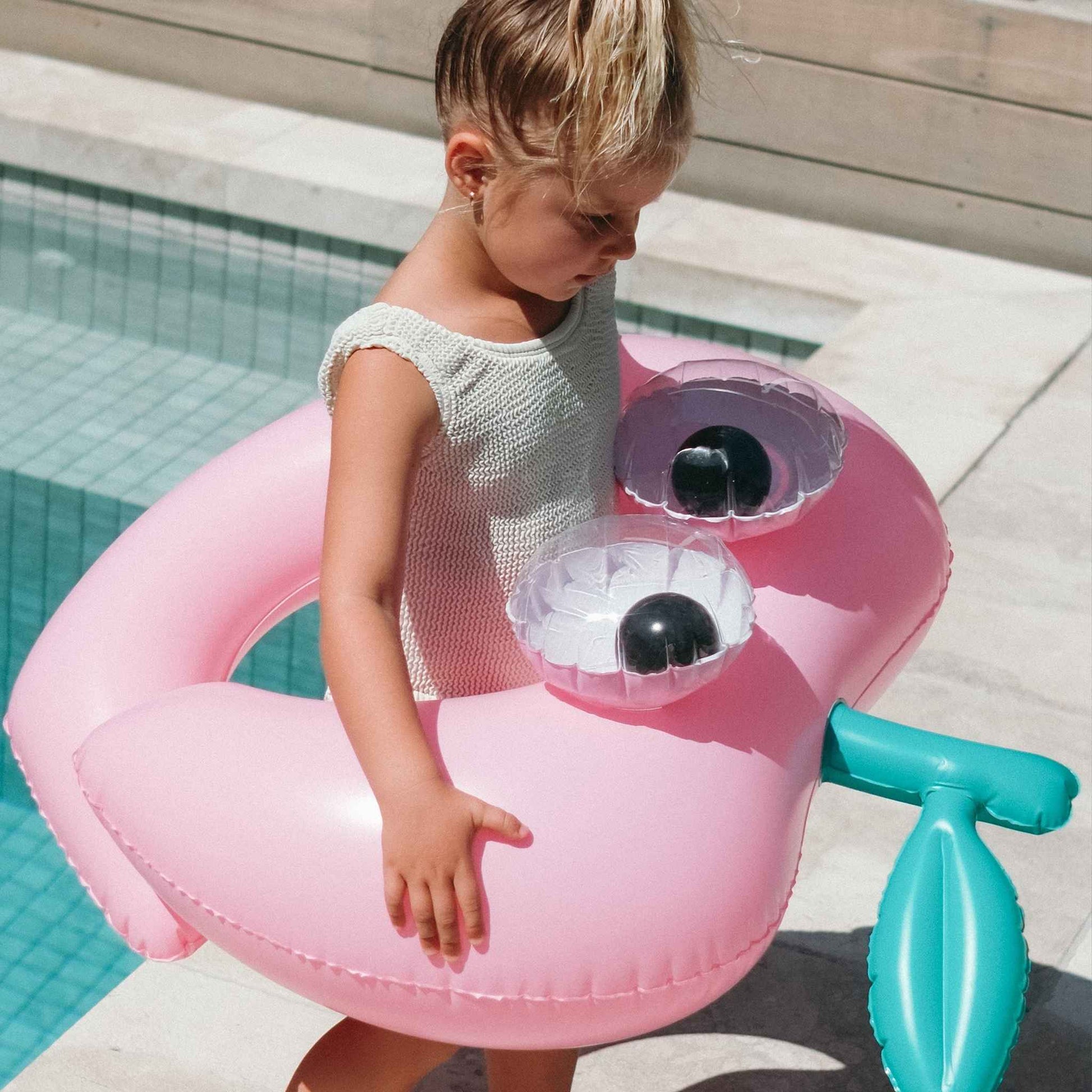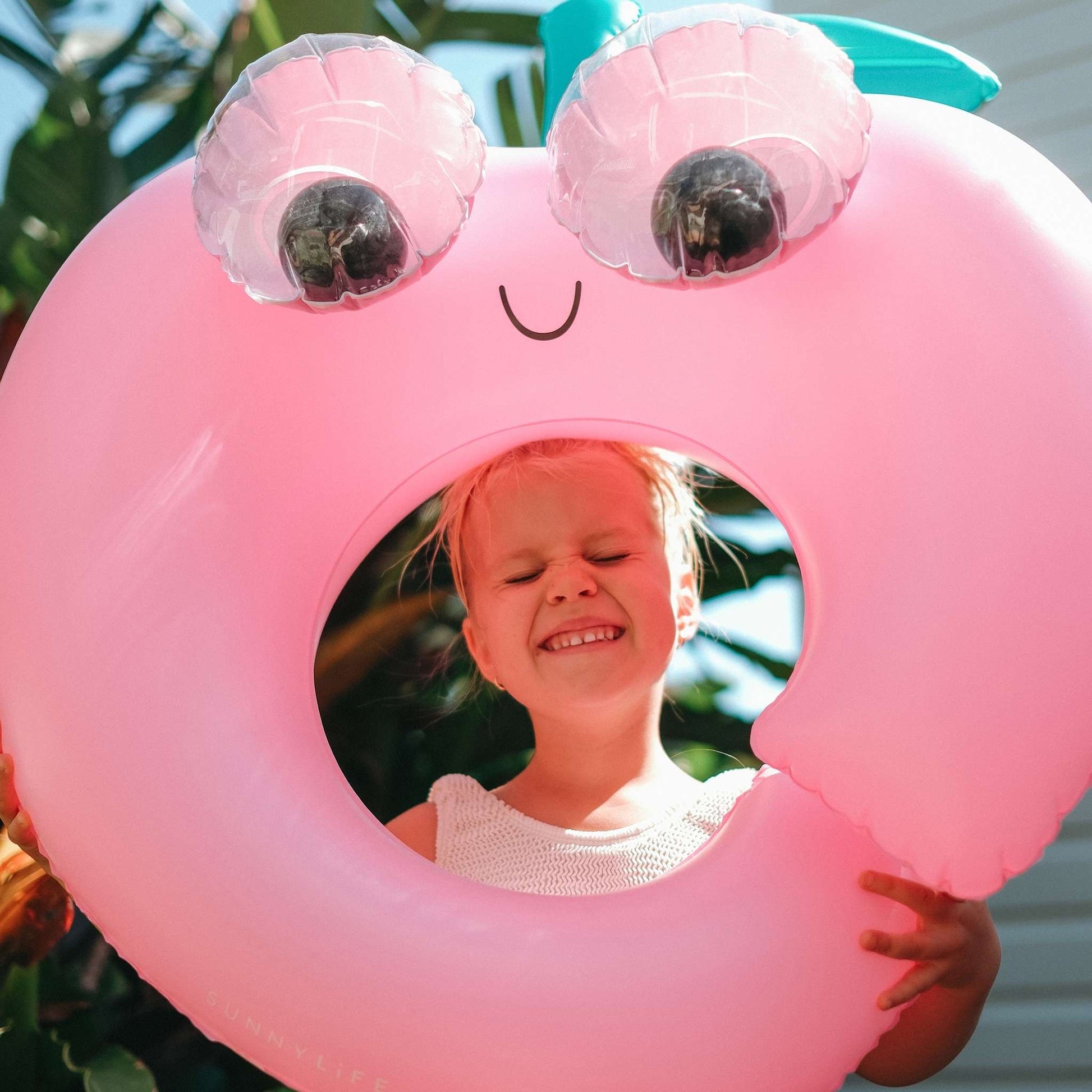 Say hello to Poppy, your cheerful new companion for swims in the summer. Shaped like a peach and pink in colour, poppy will melt your heart with big hopeful eyes and a friendly smile. This charming float makes fun in the water even more exciting, while simultaneously gently assisting as your little swimmer builds their confidence. A gap on the side of the ring makes entry and exit easy, and the durable phthalate-free PVC material offers durability so your new friend will stick around a while.