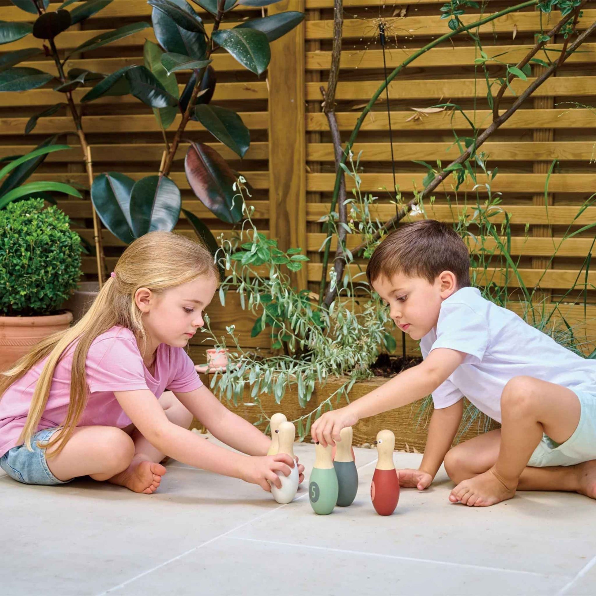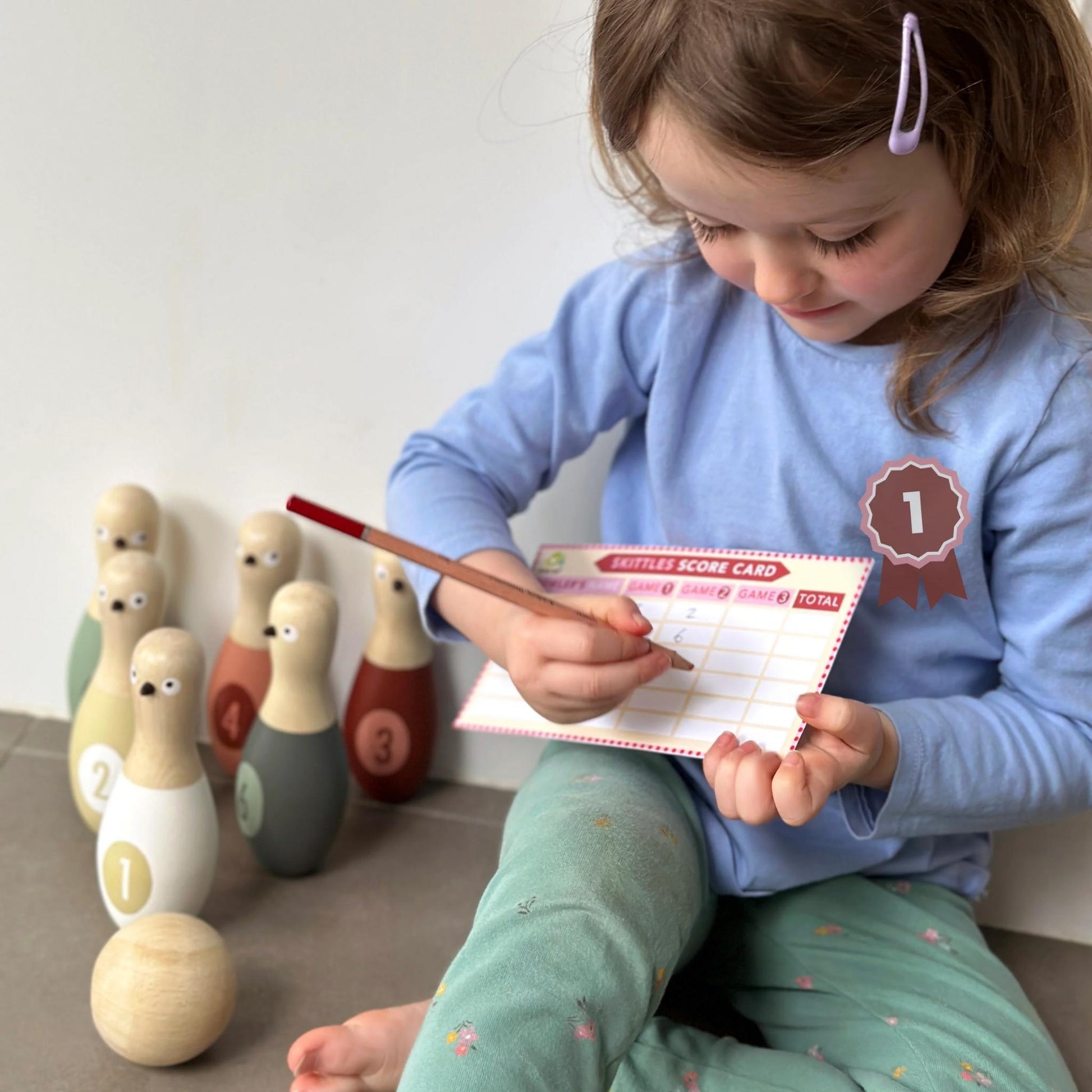 Get the ball rolling with this Birdie Skittles set from Tender Leaf Toys - an exciting, active game for indoors or outdoors. Set the six cheeky pigeons on their perch, then take your mark and bowl them over. Grab a pen and keep score if you're feeling competitive! The game offers an exciting way for practising hand-eye coordination and motor skills. A handy bag gives you the option to take the fun with you on trips and days out.