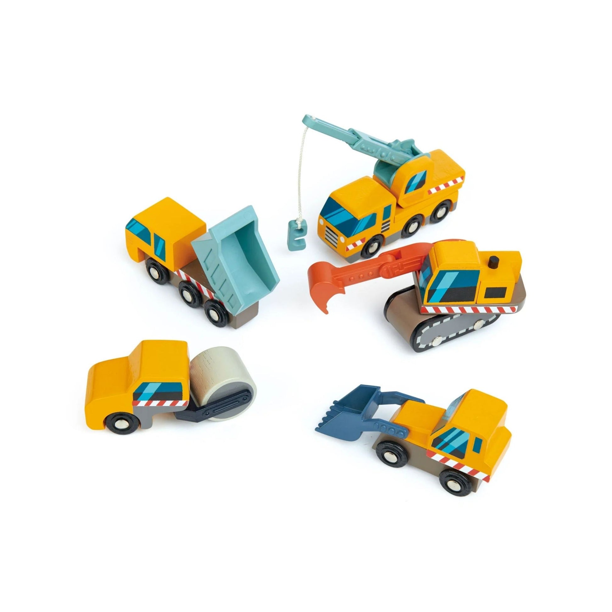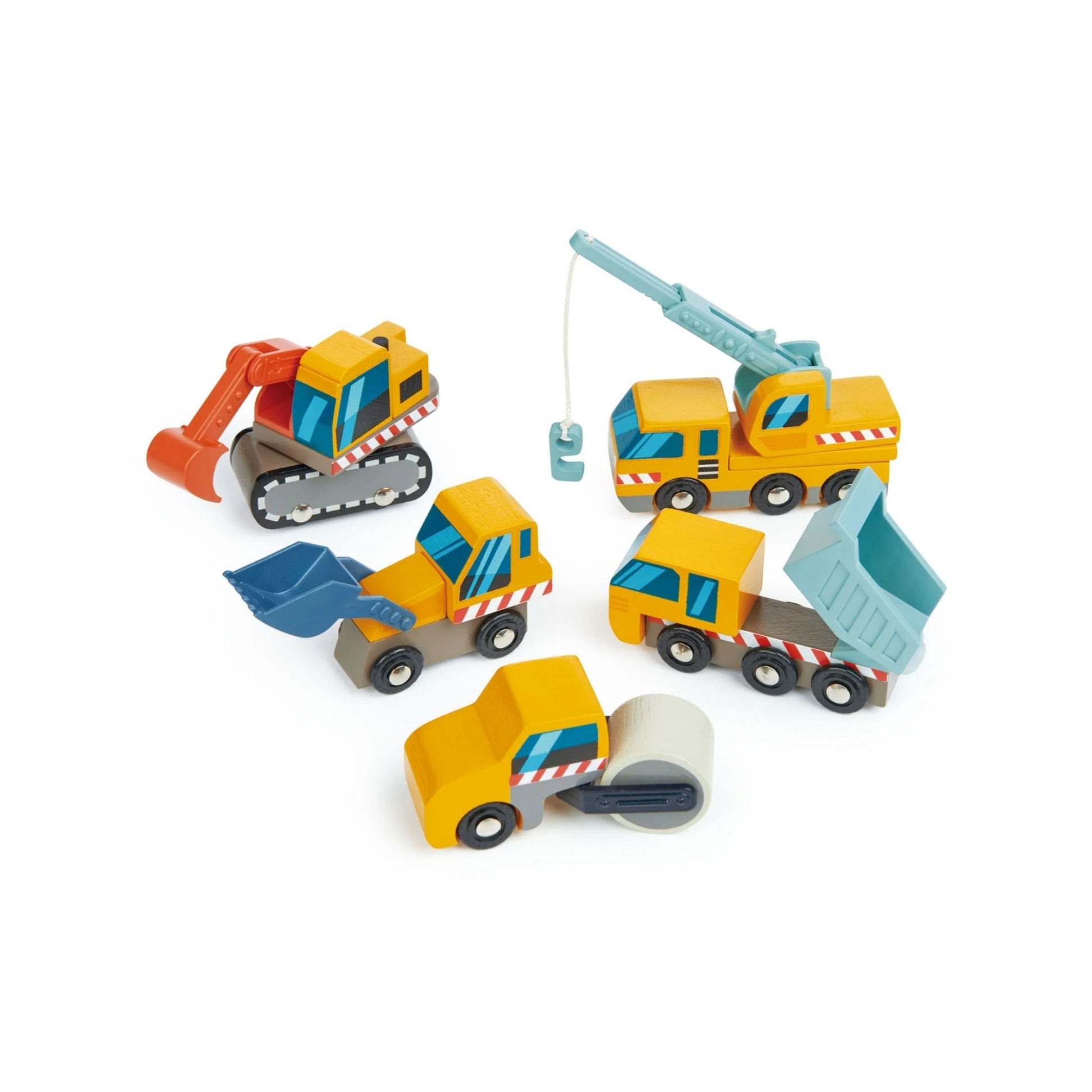 Get ready for a busy day on the building site with the Tender Leaf Toys Construction Site. This beautifully designed toy set includes a collection of realistic construction vehicles, including a dump truck, front loader, digger, crane truck, and road roller. Each vehicle is perfectly sized for little hands with moving parts for fun play.