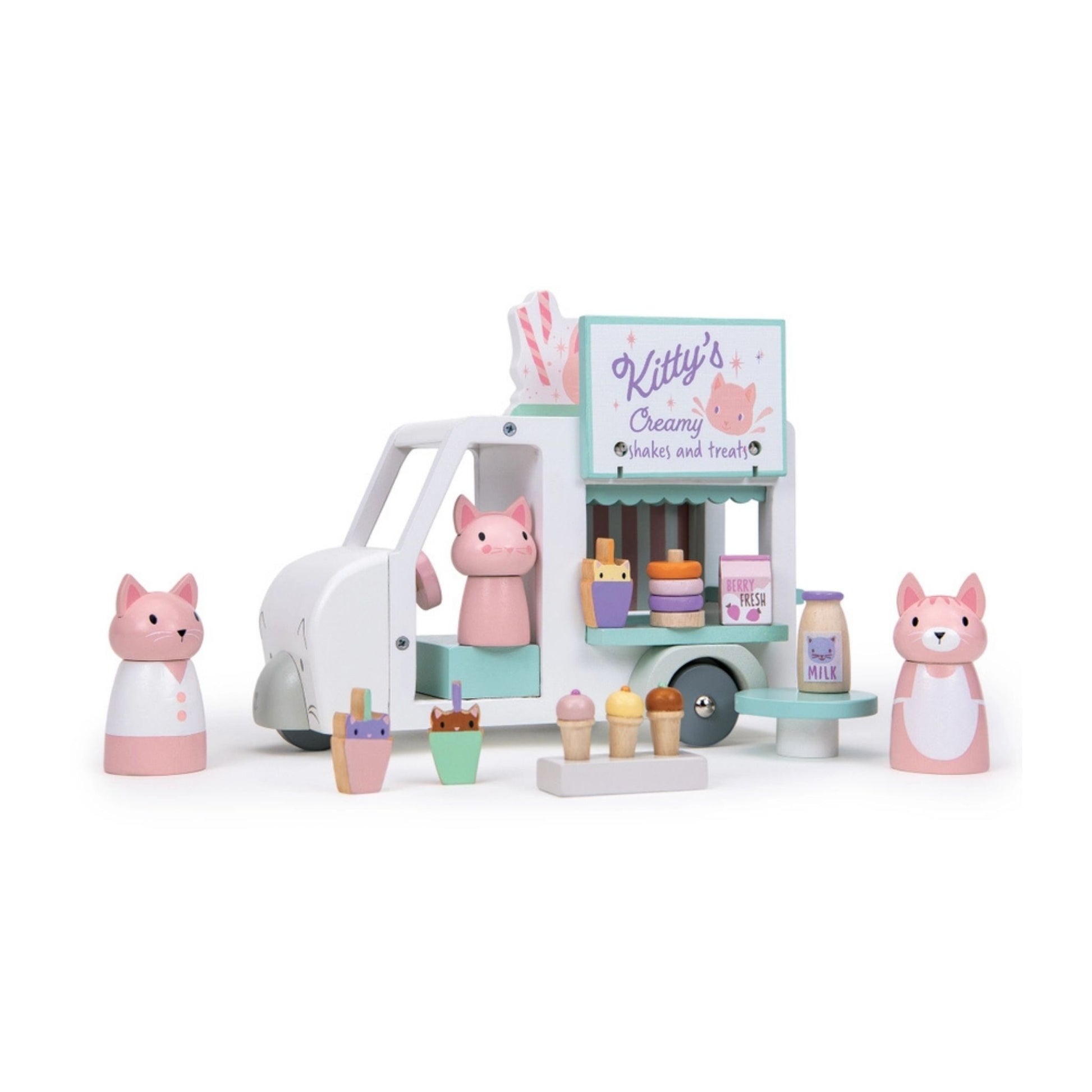 Meet Kitty and her hardworking family as they travel around town serving up delicious milkshakes, doughnuts, and ice creams from their charming three-wheeled van. The Tender Leaf Toys Kitty’s Milkshake Van is a sweet wooden playset designed to spark storytelling and imaginative play. The van is designed with serving hatches, meaning little ones can create endless role-play adventures as Kitty and her family serve happy customers wherever they go.