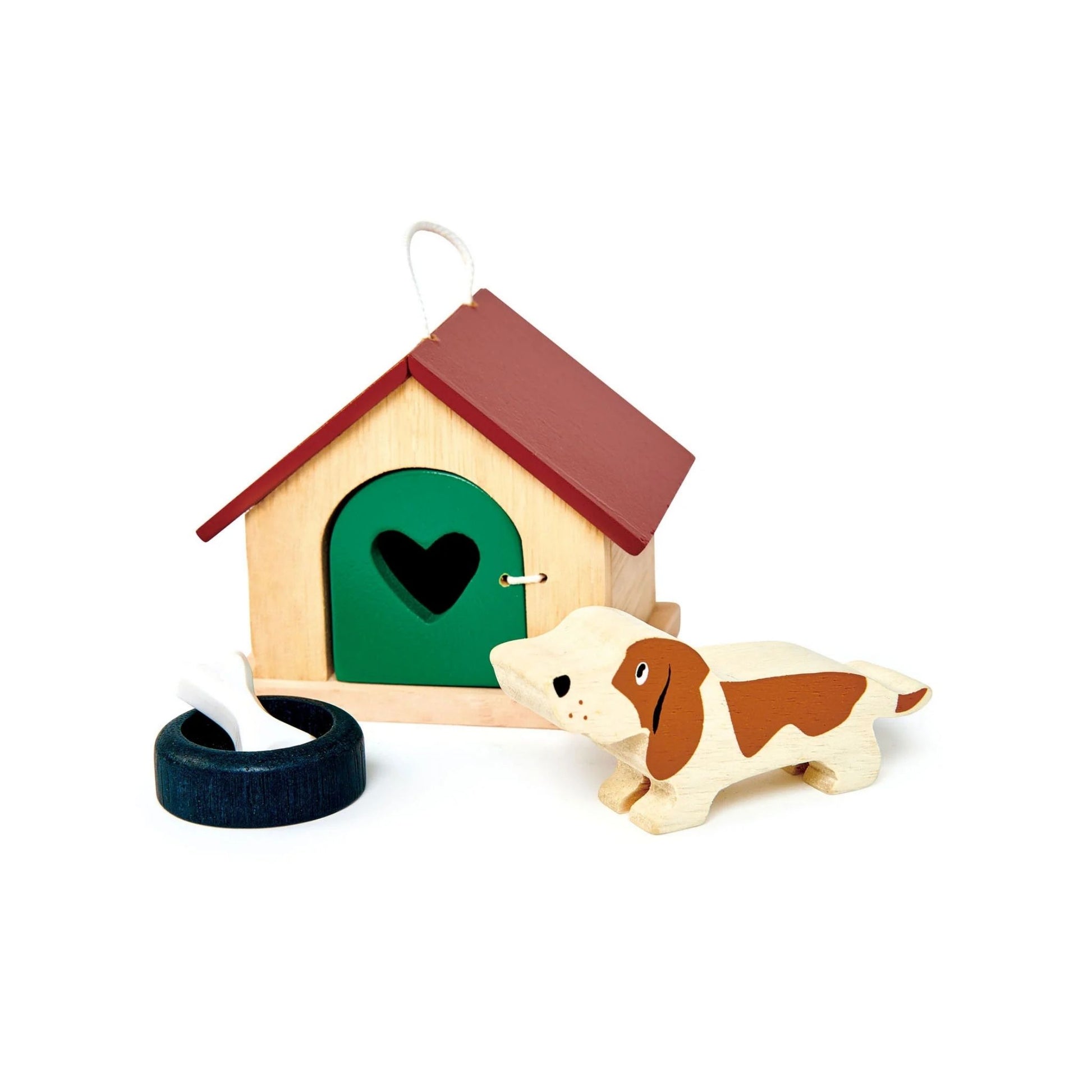 Every dolls house family needs a faithful companion, and the Tender Leaf Toys Pet Dog Set is the perfect choice! This delightful wooden set features a sweet basset hound with its very own bowl and bone, ready for mealtime or play. The adorable dog comes with a pretty wooden kennel, complete with an opening door and a handy carry handle, perfect for little hands on-the-go.