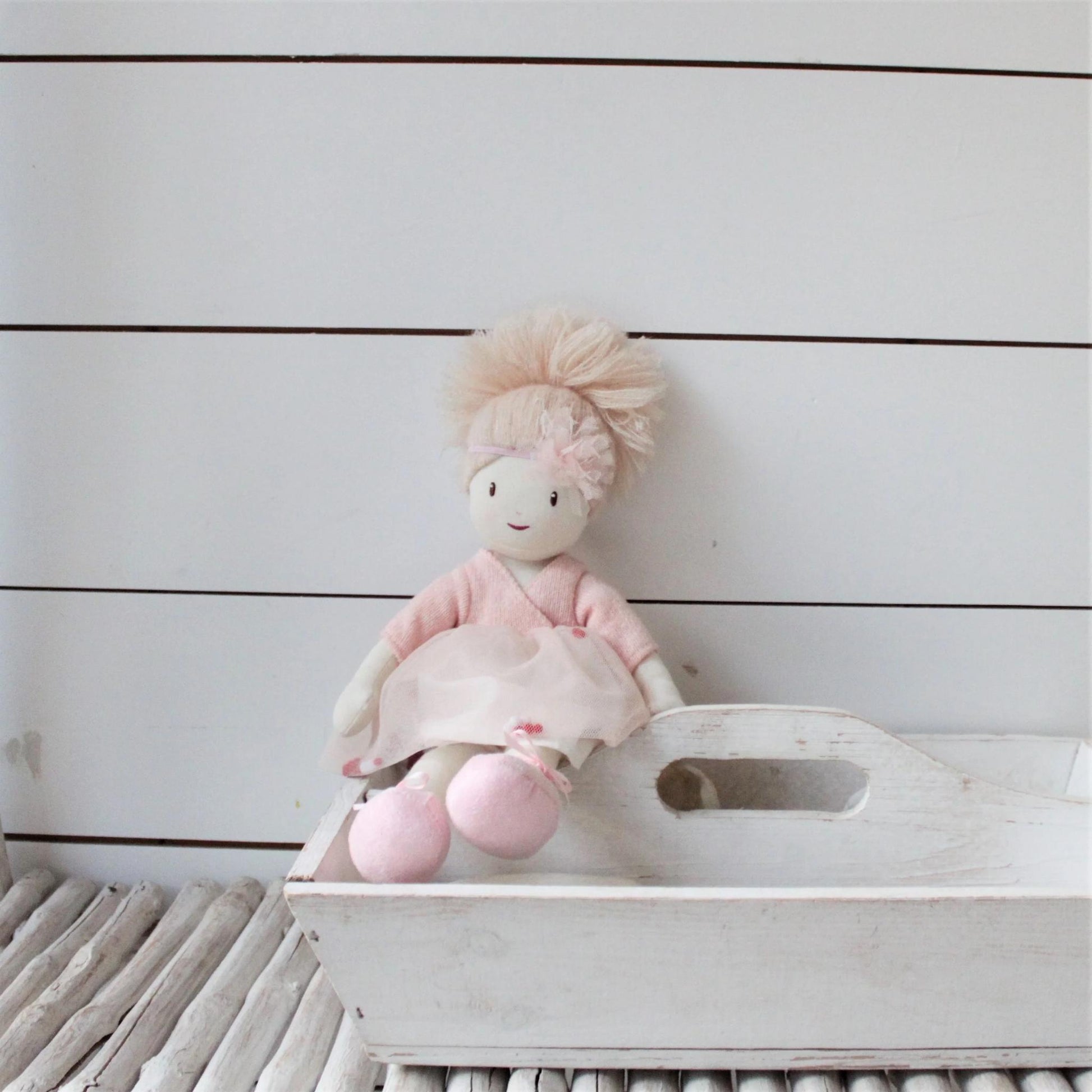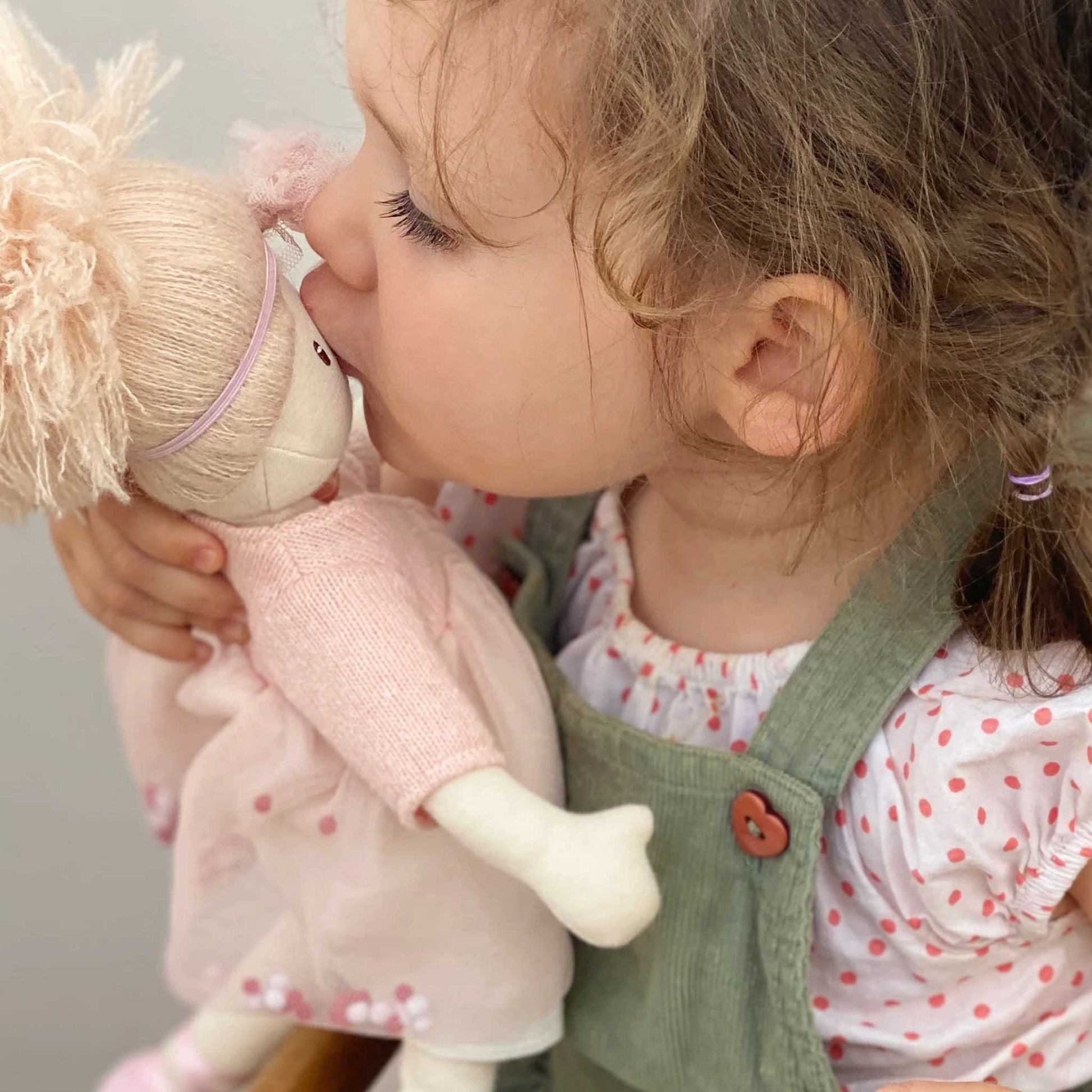 Meet Amelie, a charismatic rag doll with fabulous blonde hair whose appearance is the epitome of pink and fluffy! Made with gorgeous, soft fabrics, Amelie can offer super-cosy cuddles while still being sturdy enough to sit up.