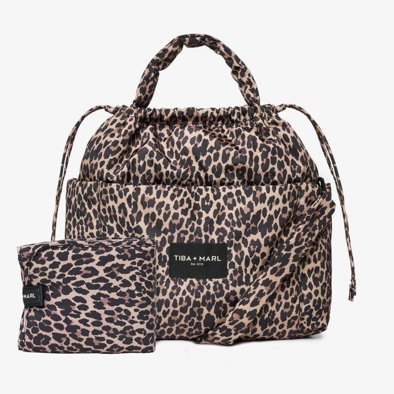 Tiba + Marl Large Luna Drawstring Stroller Bag - Leopard Print