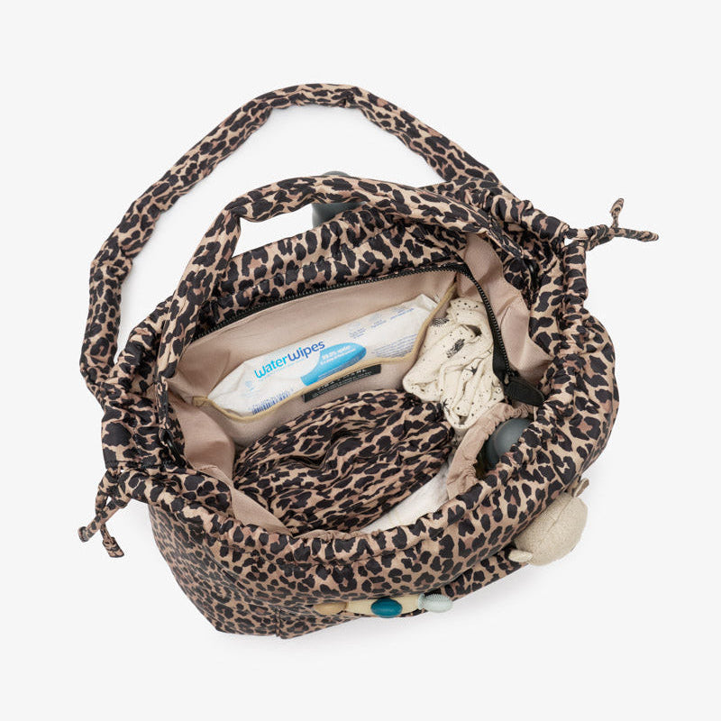 Designed in a beautiful leopard print and finished with matte-black hardware, the Luna adds an effortless touch of style to any outing. Featuring soft, cushioned straps, a relaxed drawstring shape, and a roomy interior, it’s the ideal everyday bag for life on the go. Inside, you’ll find a large slip pocket, an insulated bottle holder, and a padded leopard-print changing mat, keeping you organised while looking chic.